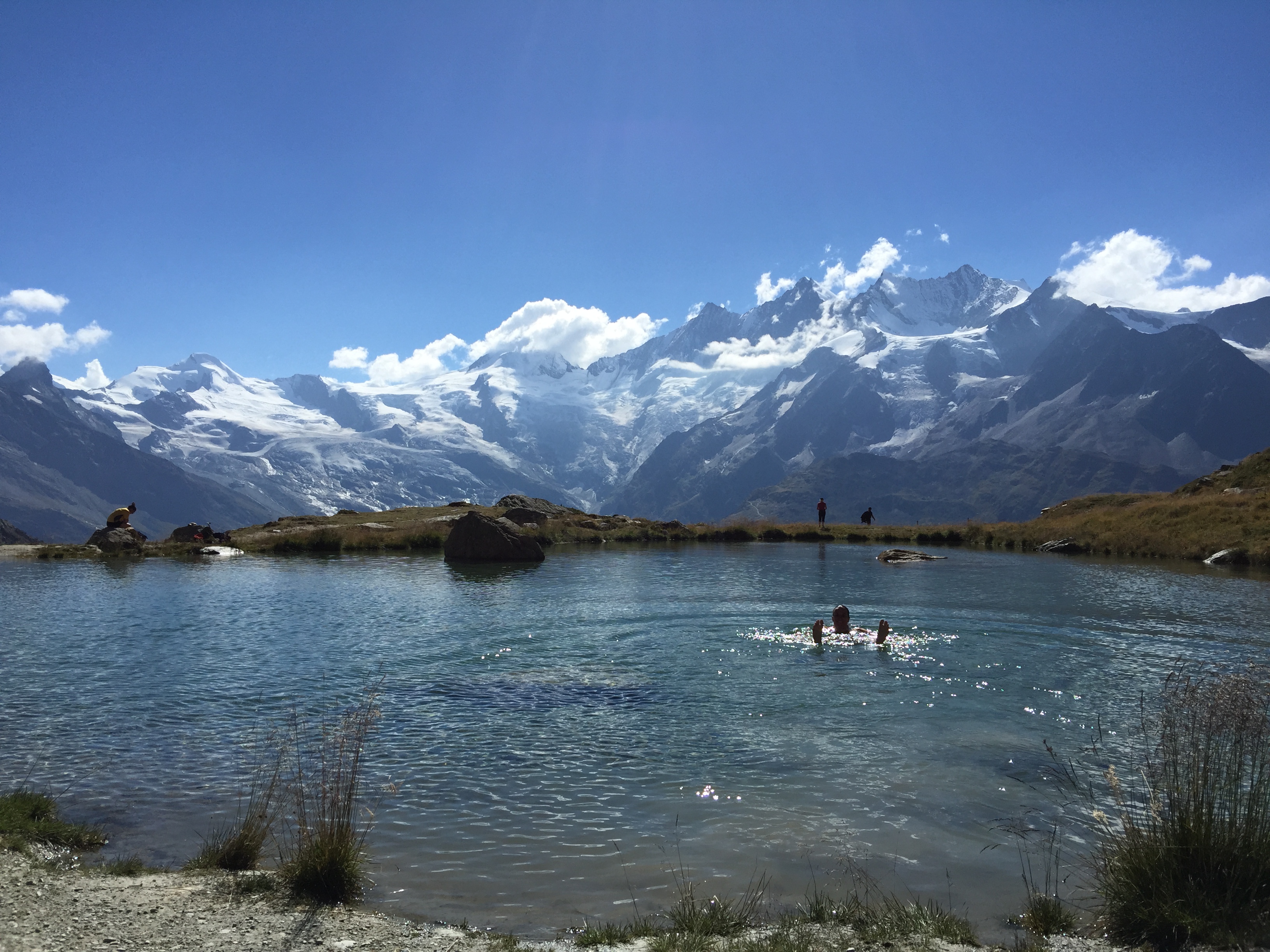 Toute l’équipe se rejoint au sommet pour partager un pique-nique des plus sympathiques avant de redescendre à Kreuzboden. Le petit lac est parfait pour une bonne détente musculaire, quoi qu’en pensent certains !