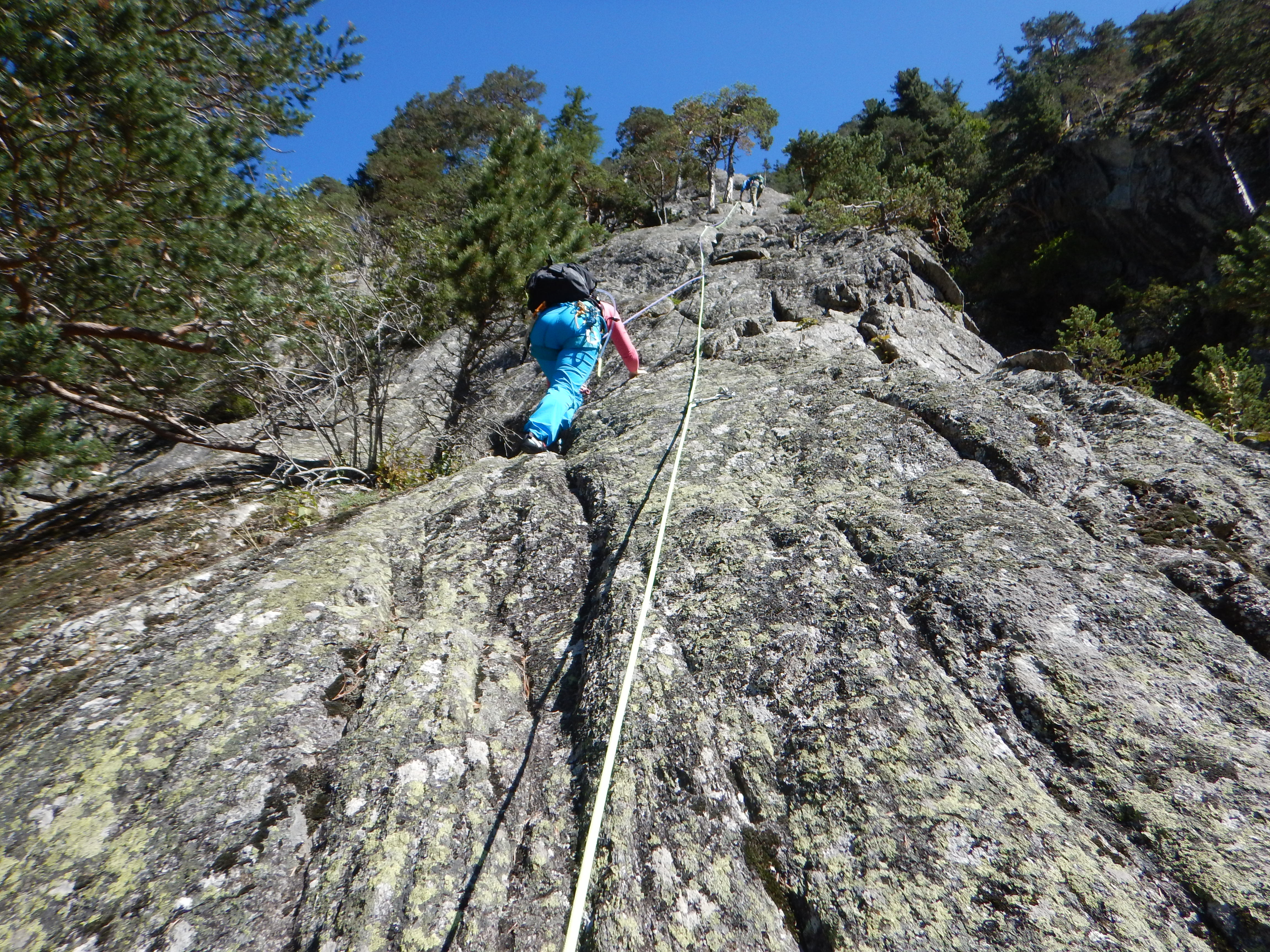 L’endroit est juste génial, le rocher est bon, franc et les pins confèrent au site une ambiance méditerranéenne surprenant dans ce coin de pays. La voie est vraiment belle, maintenant que j’y suis allée je peux vous le dire: ça ne sera pas la dernière fois !