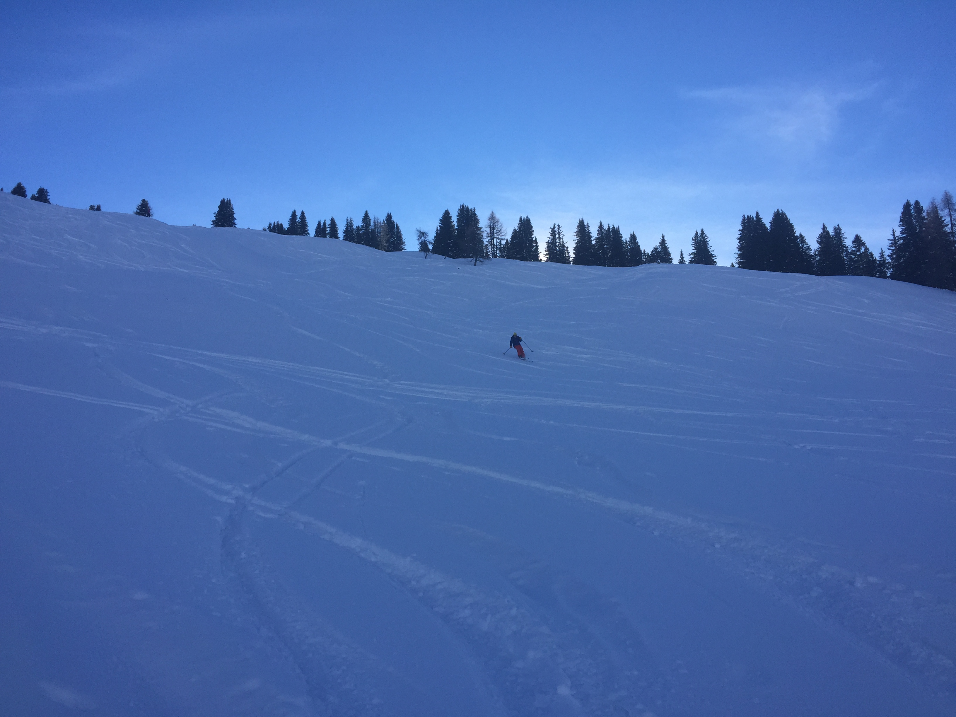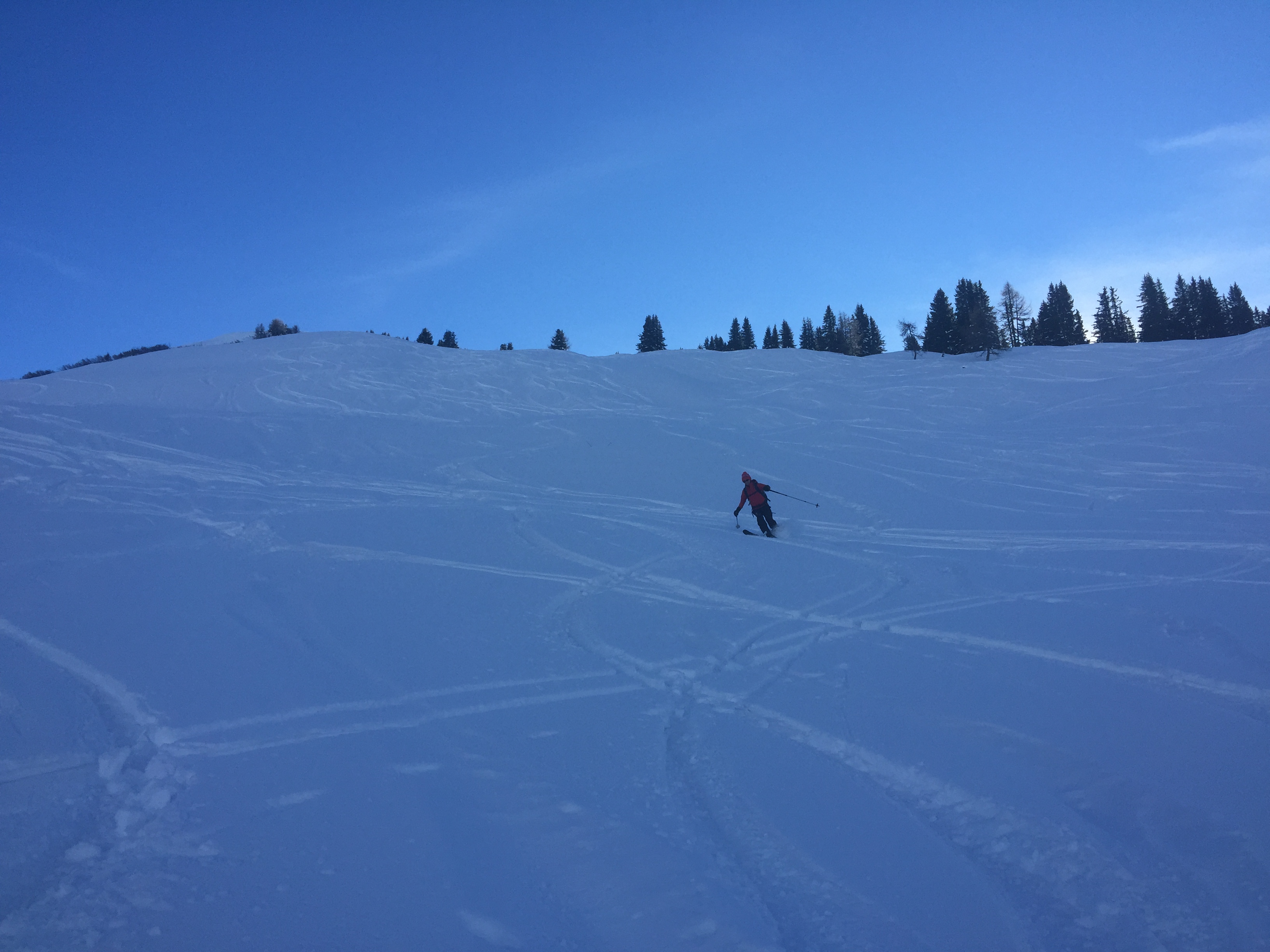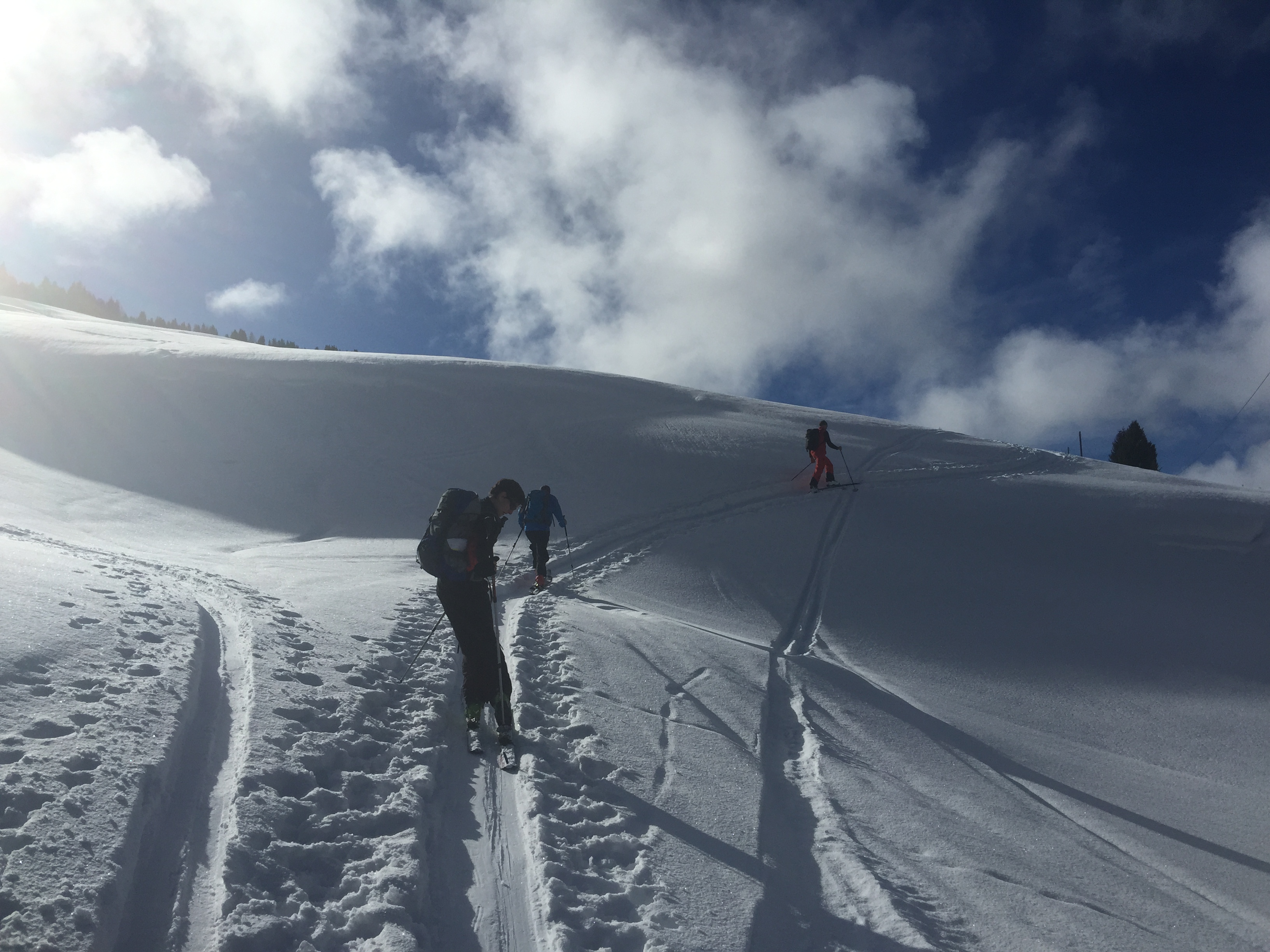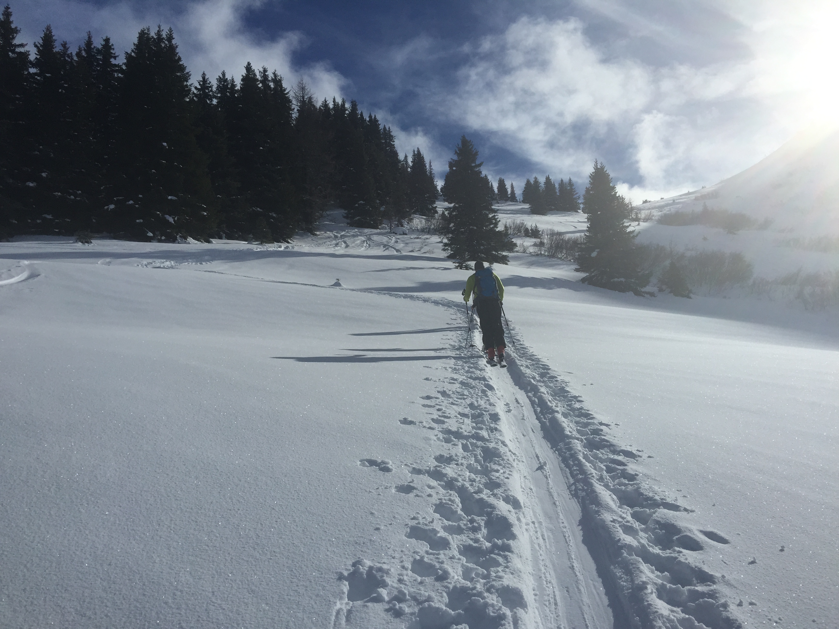 C’est un très chouette itinéraire, jamais difficile et peu raide, mais avec de belles pentes à skier quand même. Nous avons croisé quelques skieurs à la montée, des connaissances au sommet et personne dans la descente ! tip top !