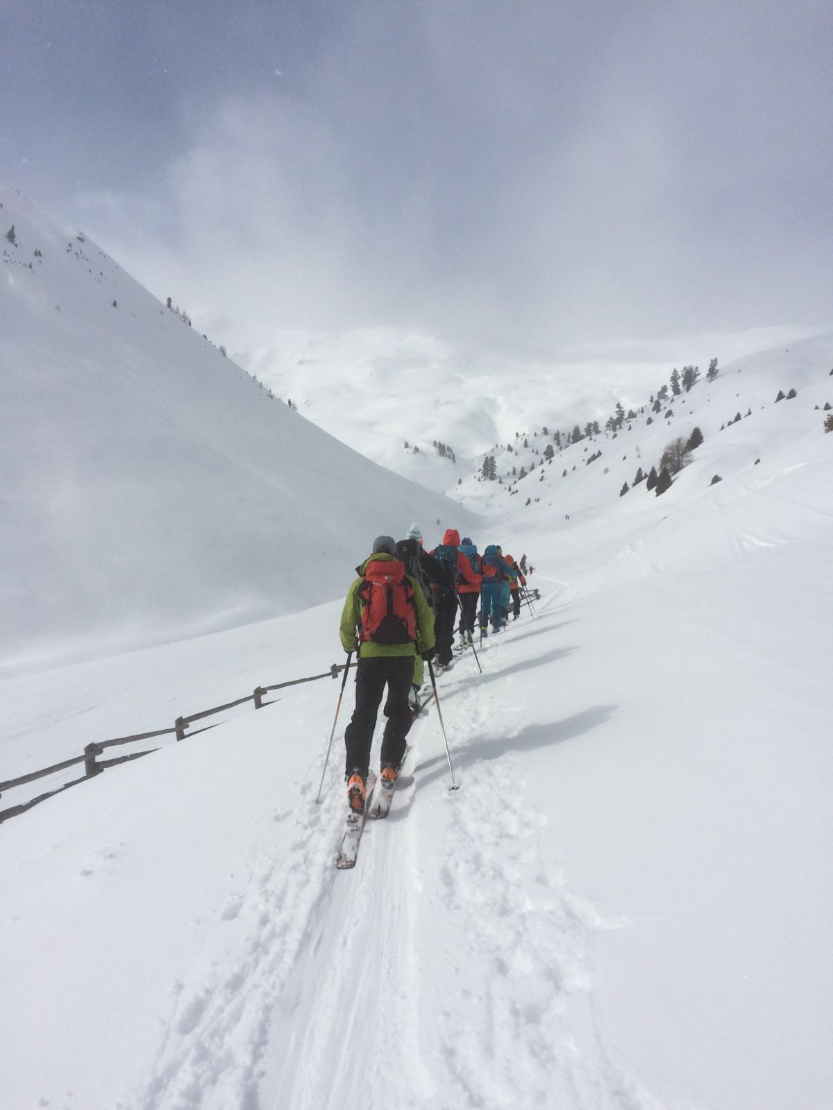 Accompagné d’Edgard, un guide génial avec qui nous avions déjà passé un super week-end à Cham il y a quelques années, et d’un groupe de participants adorables, nous avons parcouru les pentes de la région avec des conditions top. J’ai adoré les paysages, le ski, le soleil, les excellents repas et les Aperol Spritz, mais ce qui m’a vraiment marqué durant cette semaine est l’amitié et la solidarité qui s’est formée dans le groupe.