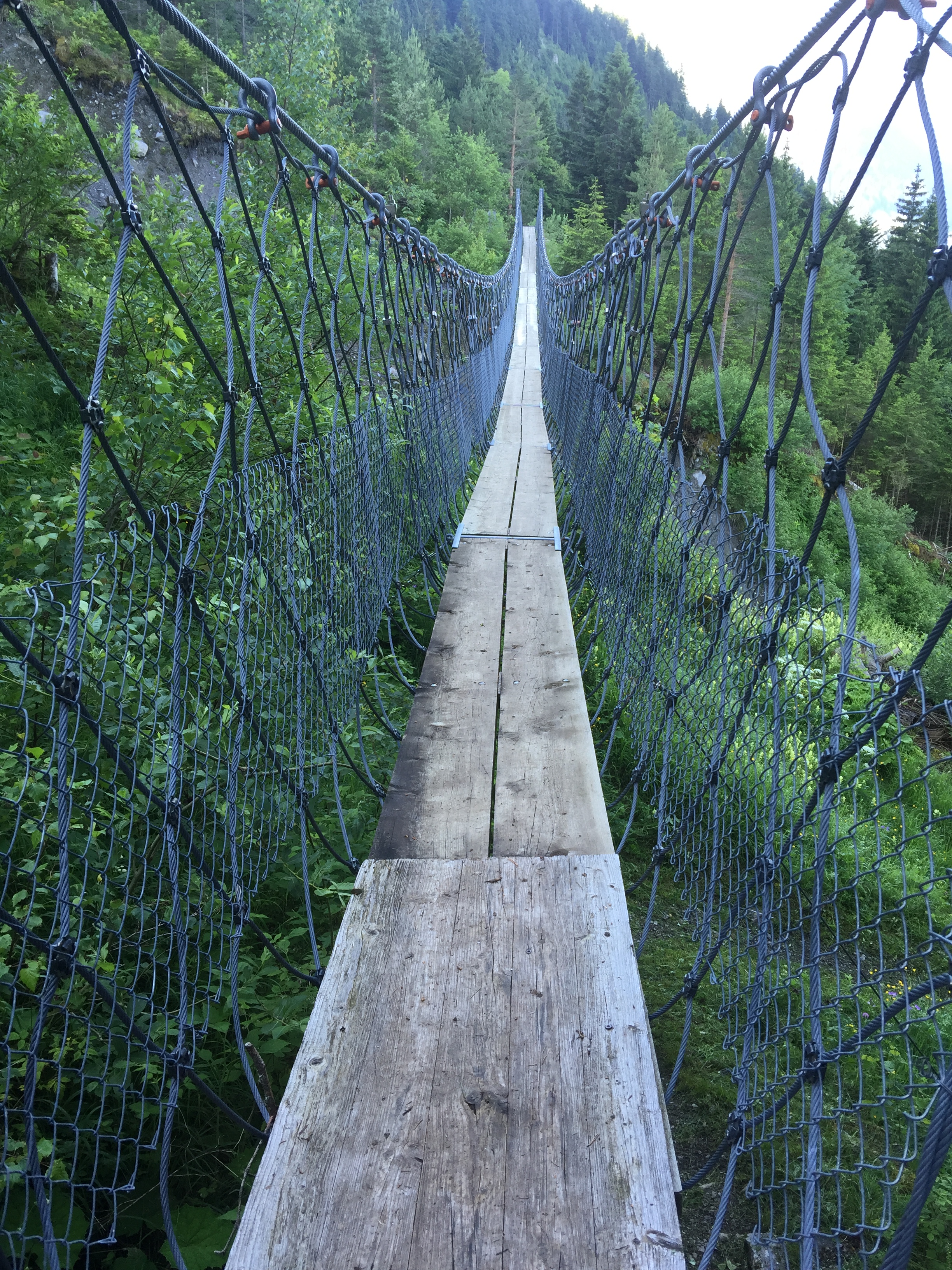 La journée commence par une descente assez casse-pattes, mais finalement vite avalée, puis par une traversée plus ou mois à flanc de montagne. Un randonneur rencontré quelques jours plutôt m’avait prévenu qu’il y avait une ravine vraiment difficile et expo à traverser. Et bien le problème appartient au passé grâce à un nouveau pont suspendu. Personnellement je n’aime pas trop ça, mais disons qu’en serrant les fesses, ça a vite passé !