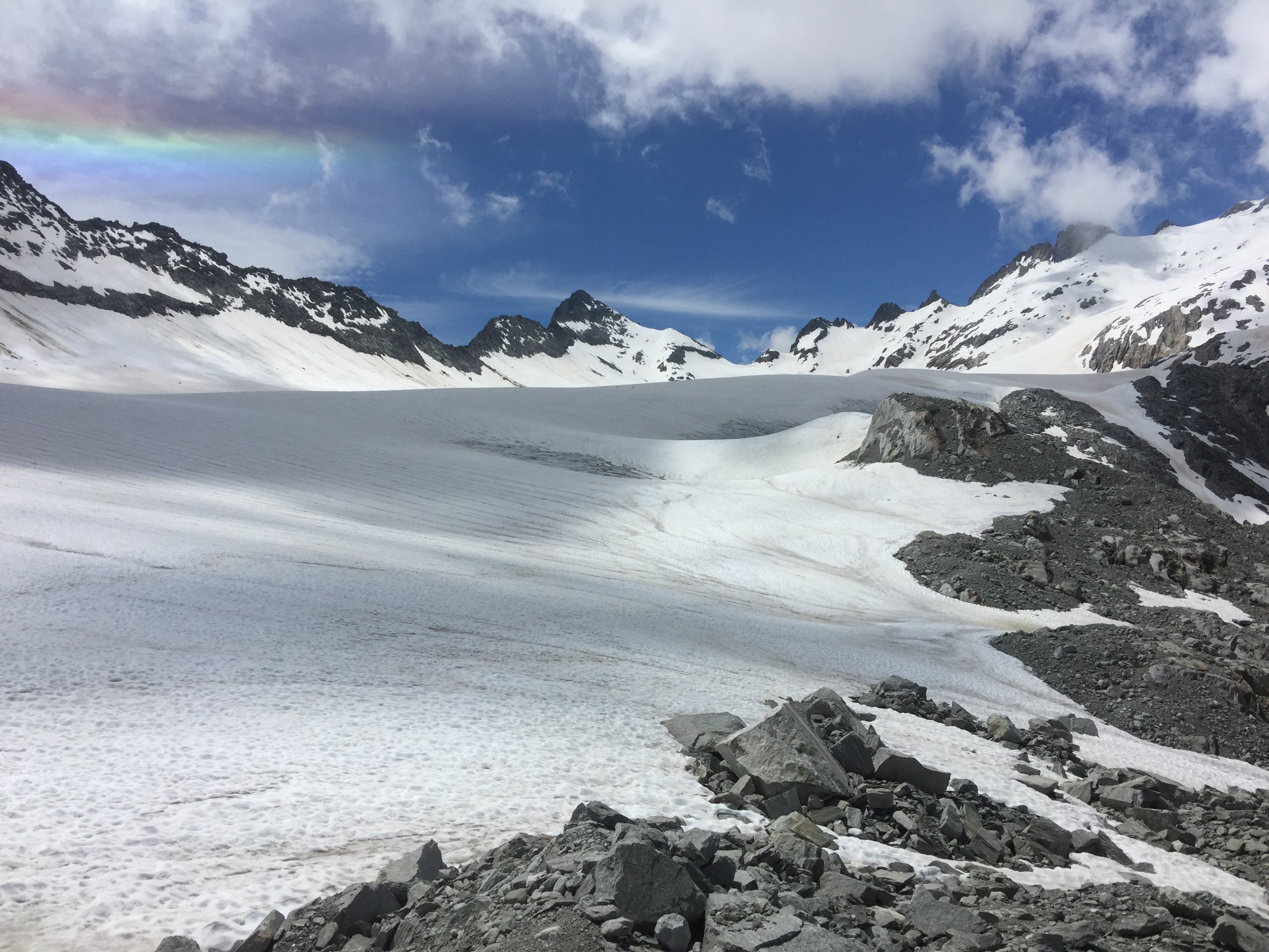Le bilan de ces deux semaines et demie de rando est excellent: Plaisir fou, météo pas pire, rencontres supers, zéro cloque, zéro mal de genoux, la banane quoi ! Je suis partie tôt dans la saison ce qui fait que j’ai eu pas mal de neige, mais en contre-partie j’ai eu la paix, très peu de monde dans les refuges et sur les sentiers. Et j’ai découvert qu’il y avait des endroits géniaux, même en dehors du Valais !