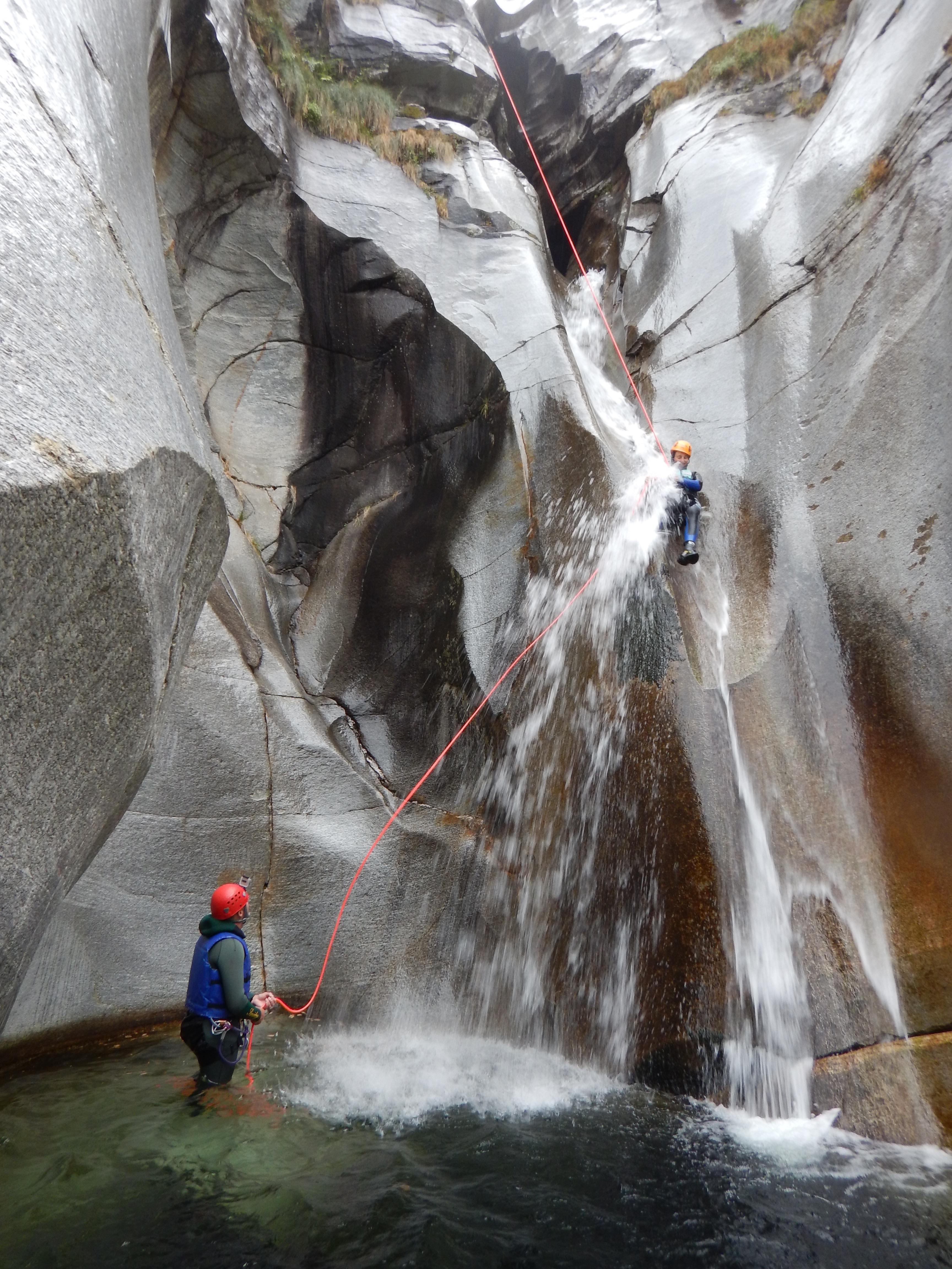 Nous avions parcouru les parties supérieures et intermédiaire de ce magnifique canyon en 2013. Trois ans plus tard, nous retournons au Tessin pour terminer ce que nous avons commencé. Cette fois nous sommes accompagné par Yvan et David, ainsi que par Romain qui secondera Gilles dans l’encadrement du groupe.