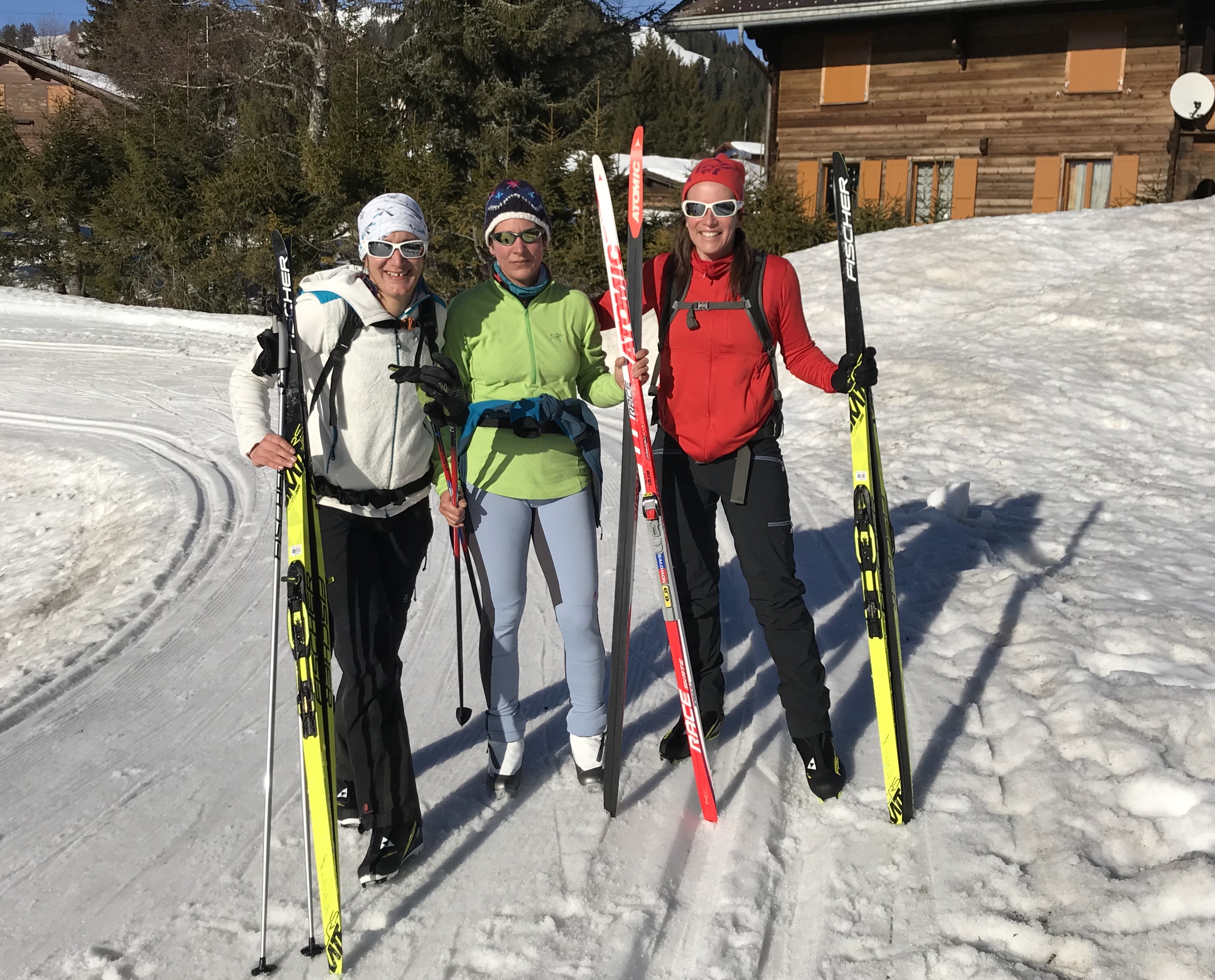 Entrainement skating avec mes coéquipières de choc ! Le prochain qui me dit que le skating c’est facile, c’est soit qu’il a jamais essayé, soit que c’est Dario Cologna. Non mais sérieux … tu veux tenir comment sur des skis si fin SANS CARRES ? Céline et Pauline s’en sortent bien, alors que je rame derrière (déjà … !) je râle, je peste, je tombe. Heureusement, l’heure du pique-nique libérateur sonne bientôt et là, je ne serai jamais la dernière ! L’après-midi se passe un peu mieux, grâce à une neige légèrement revenue qui accroche un peu mieux.