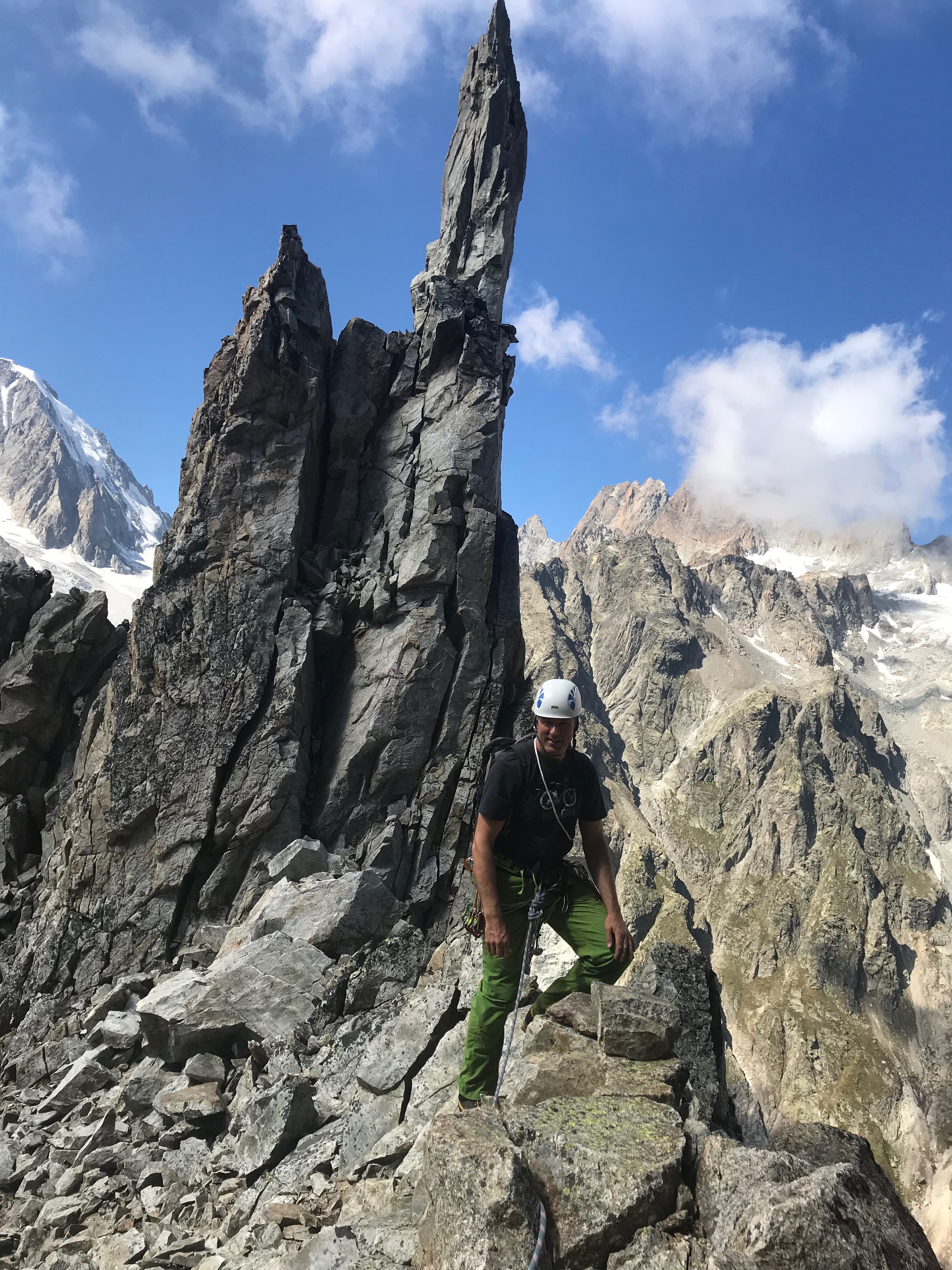 La suite est toujours aussi belle et nous profitons du sommet, seuls. Je flippe en pensant à la descente, mais en fait il n’y a rien de sorcier. L’arête est facile et la suite pour rejoindre le col très bien signalée par des cairns et des marques oranges. Je trouve la descente dans le couloir marrante, c’est le semi-marathon des chailles après le Pleureur et la Tour de Boussine. Pål rouspète, il n’aime pas ça. J’arrive à lui vendre un petite remontée jusqu’à la cabane en lui promettant une bière bien fraîche, ils sont faciles à avoir ces mecs quand même !