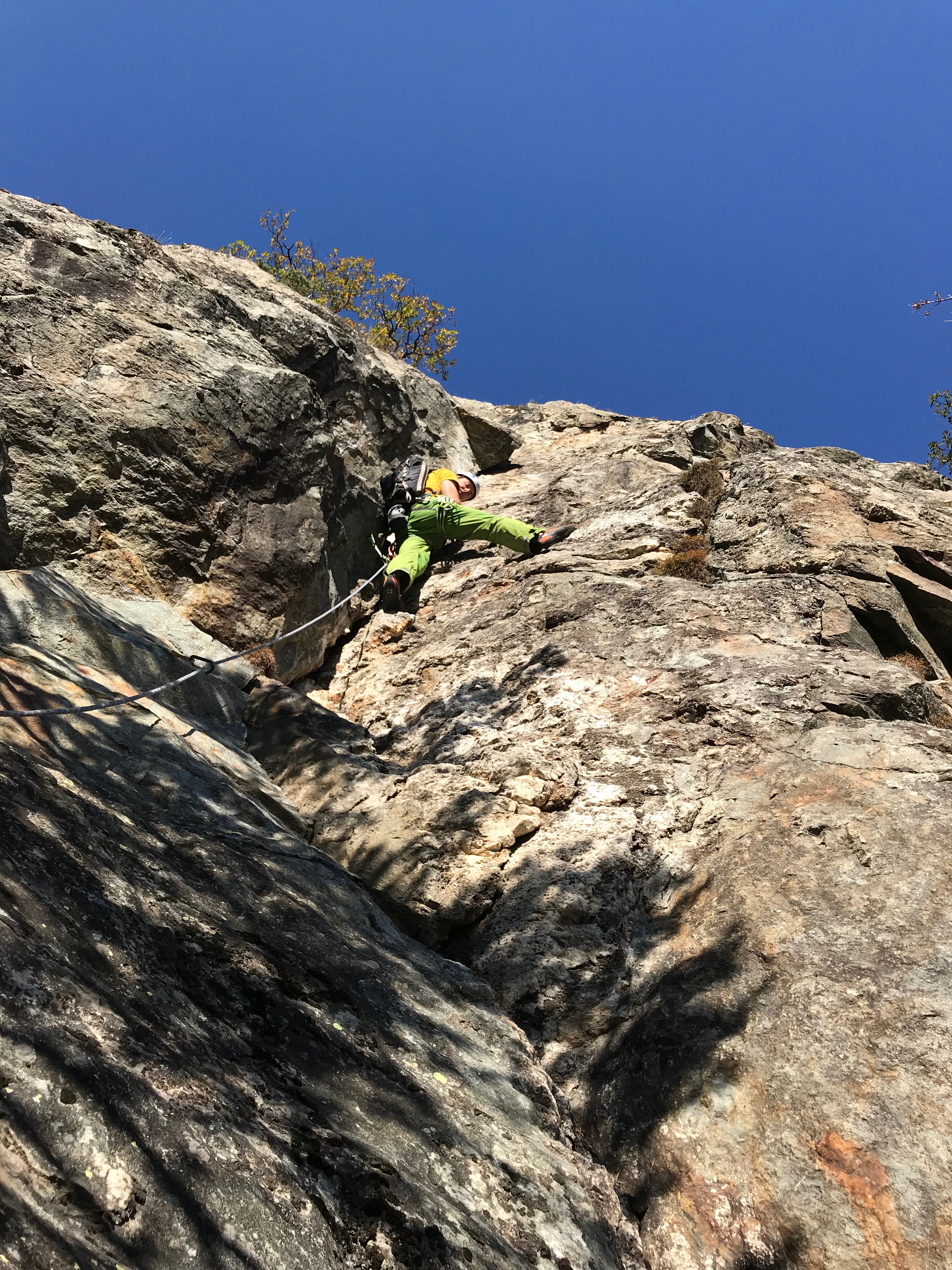 Dès la première longueur on comprend que la journée sera top: le rocher est magnifique, l’équipement bien pensé, la voie nettoyée et brossée. On ose à peine imaginer le temps passé par l’ouvreur pour préparer une voie pareille. Merci merci, c’est vraiment la classe.
