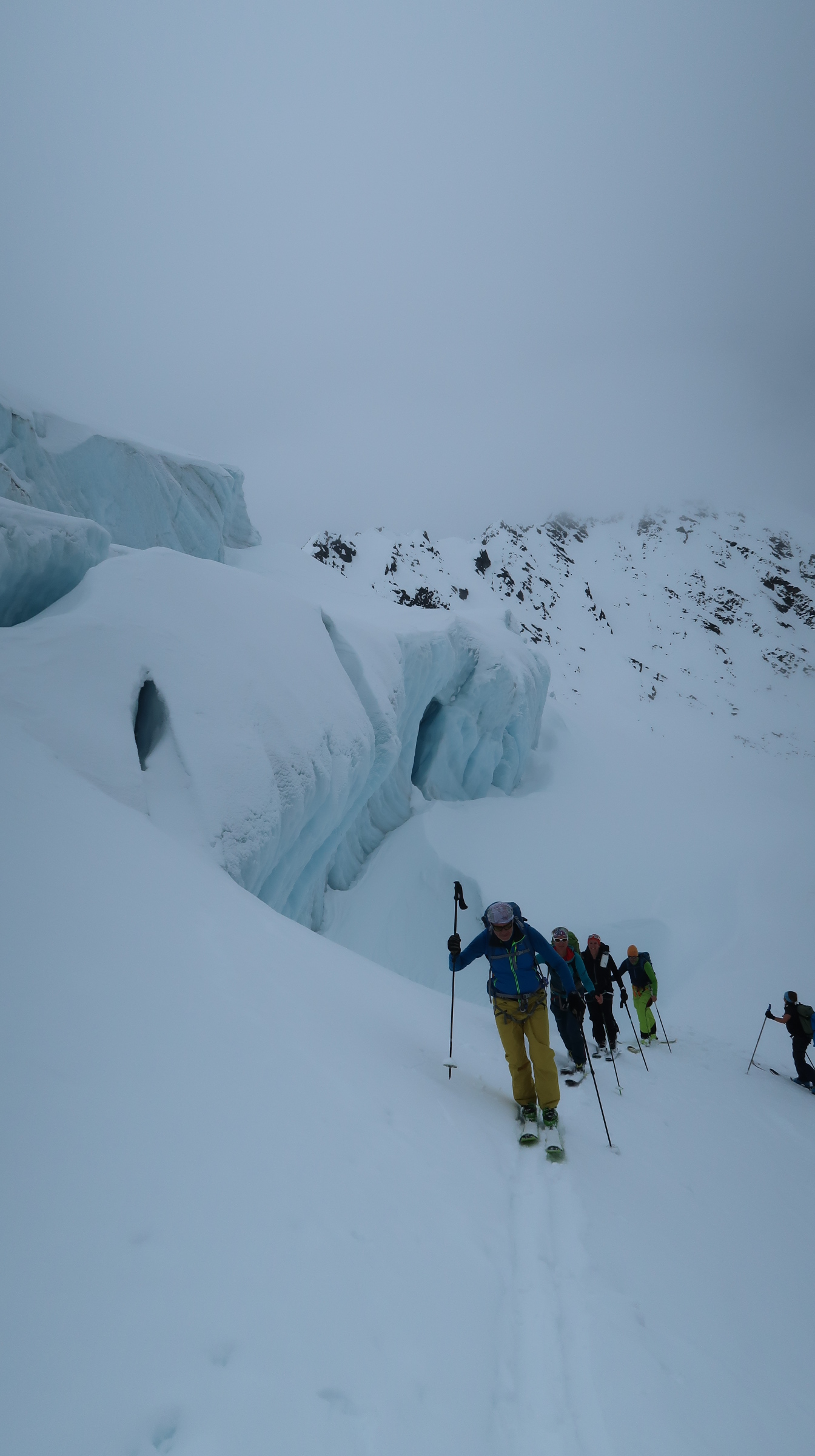 Je vous présente l’équipe en quelques mots : Coco et Etienne, Nina et Rémy sont quatre potes de la Barboleuse. Si Pål les connait très bien, moi un peu moins mais notre premier contact a été des plus chaleureux. Il y a aussi Pascale et Sandro, un couple valdo-valaisanno-valdôtain. Pour encadrer tout ce beau monde et les protéger des nounours, Manu que je ne vous présente plus tant nous avons vécu d’aventures en sa compagnie, et Raoul que nous avions brièvement rencontré à Saleinaz l’automne passé. Last but not least, l’équipage de l’Aztec Lady: Antoine le capitaine et sa compagne Julie, ainsi que Chloé et Jonathan.