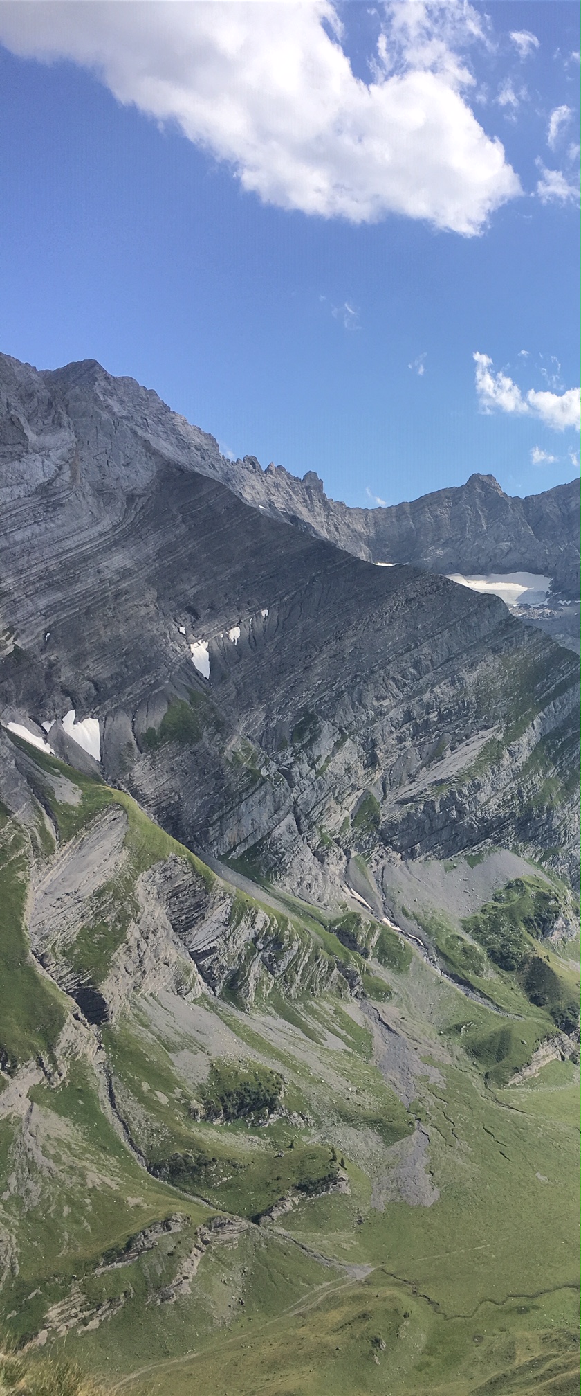 Après la voie proprement dite, quelques pas sur l’arête (« un chemin de rando » dixit P.-A, chacun sa définition !) et un p’tit couloir nous mène au sommet de la Haute Corde. On descend ensuite tranquillement par Anzeinde, personne n’a vraiment envie d’aller se casser les pattes dans le dévaloir de la Poreyrette.