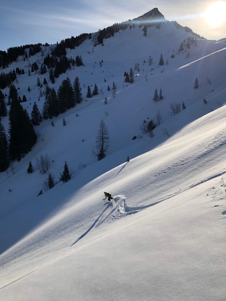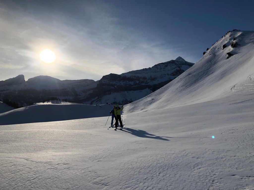 On s’offre donc une seconde super descente dans la poudreuse avant de rechausser les peaux en direction du Blattipass. Depuis le col, il n’y a plus qu’à suivre l’arête débonnaire jusqu’au Walighürli. Cette portion aura été bien plus rapide qu’escomptée et au final, on sera largement en avance sur l’horaire que j’avais imaginé.
