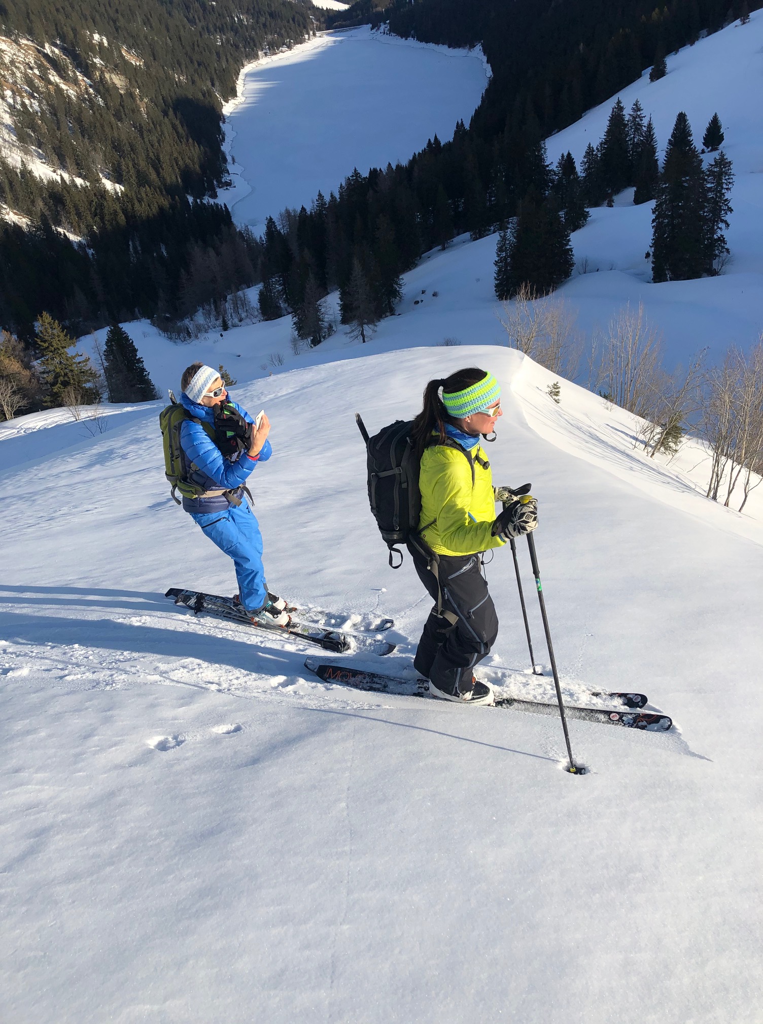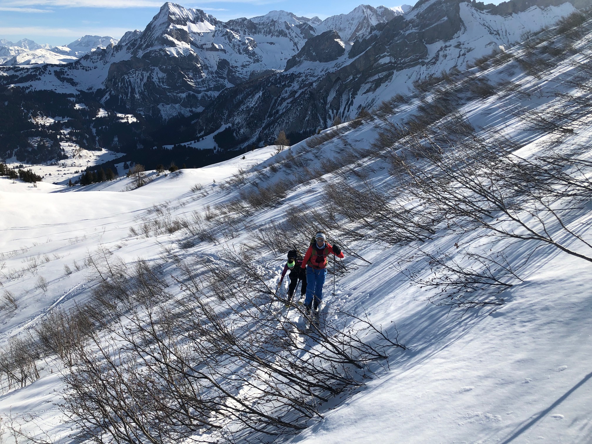 Après notre sortie à La Motte de la veille et sa descente freestyle (on s’est un peu planté d’itinéraire) dans une forêt hyper raide, Claudia est hyper motivée pour nous suivre dans un nouveau délire.