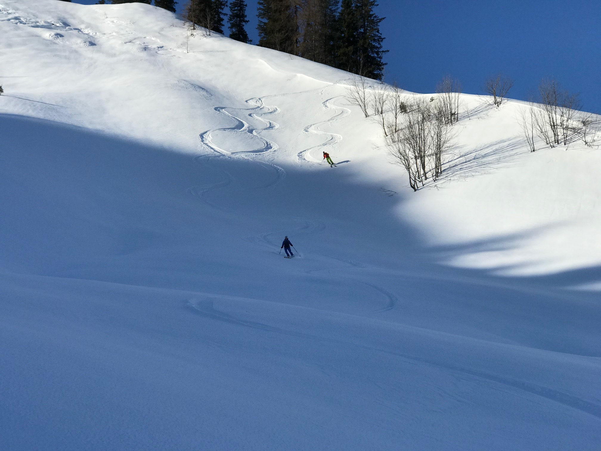 1. C’était y a une semaine. On est retourné au Walighürli samedi, on n’a pas pu aller jusqu’en bas à ski. Et hier à la Valerette, c’était du gymkana ;-D