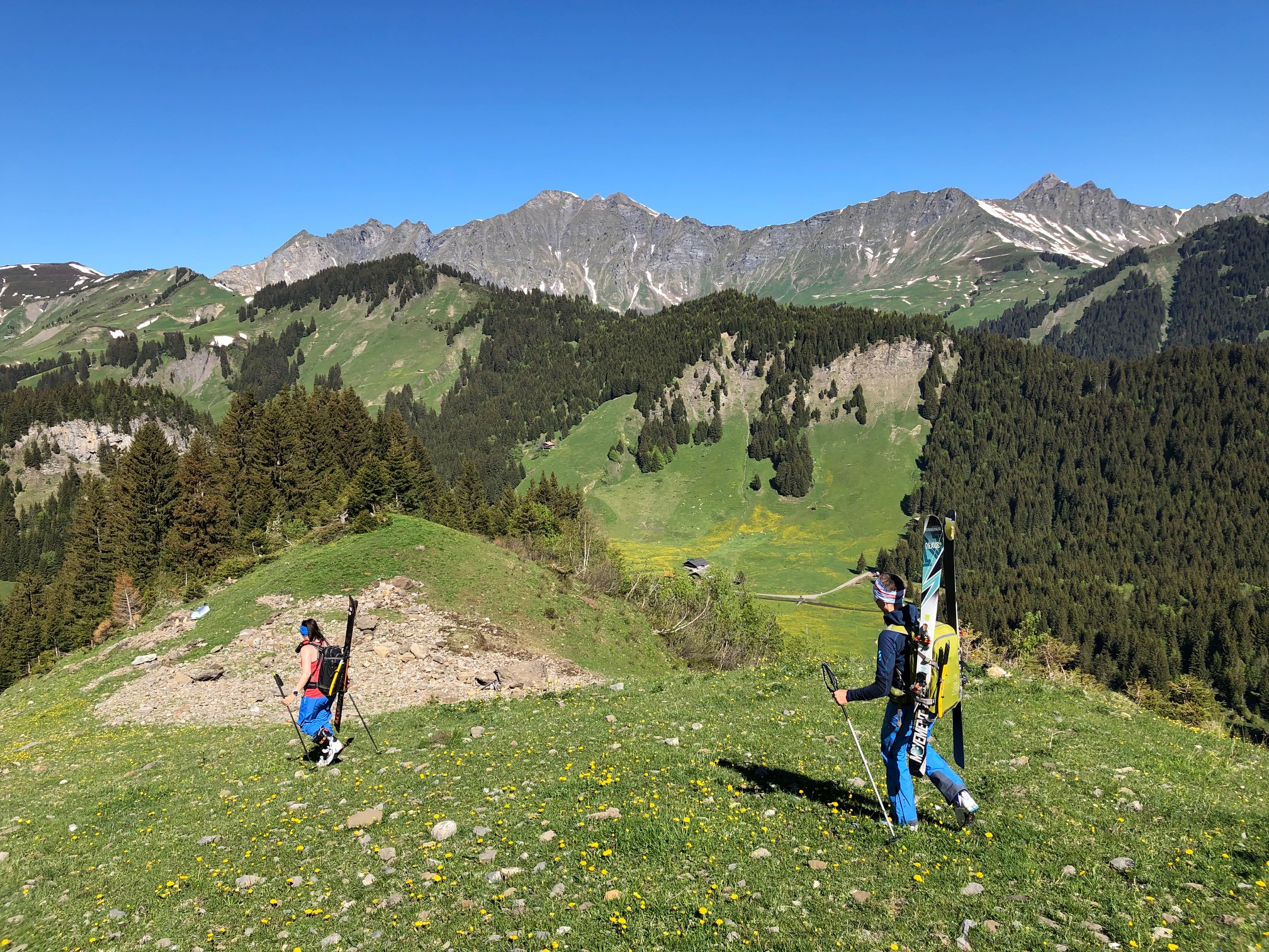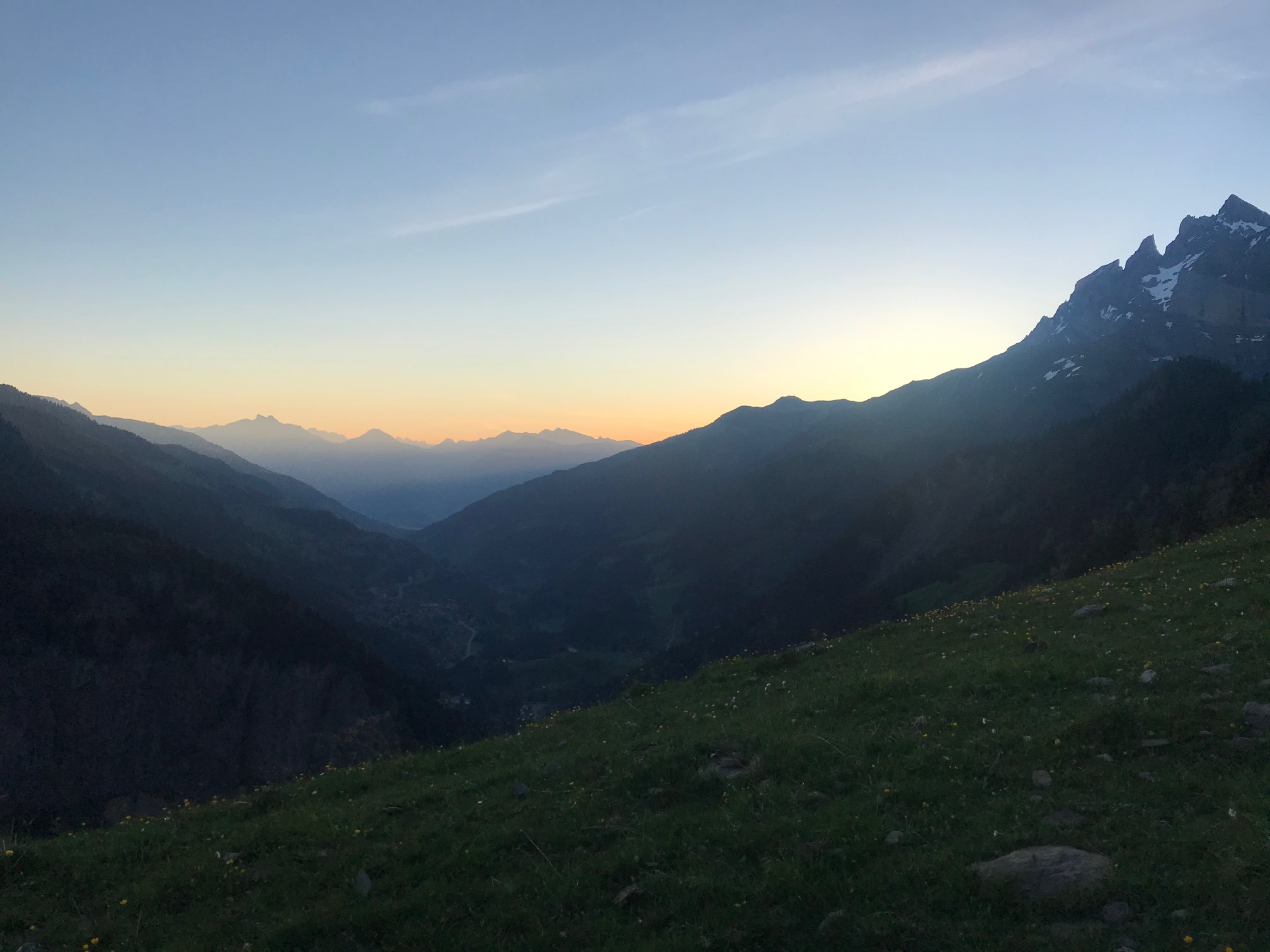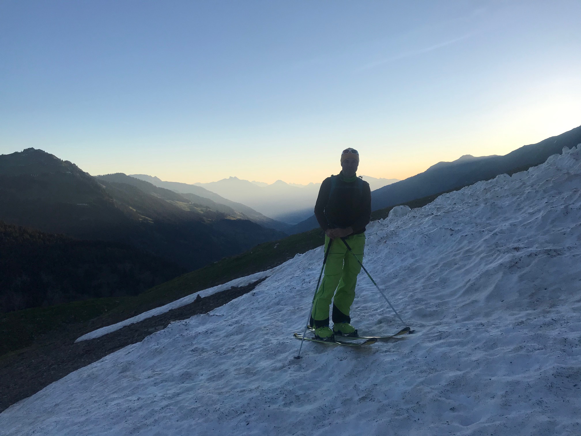 6h du matin, jeudi de l’Ascension. Les innombrables campeurs et van-eurs dorment encore, on essaie de ne pas faire trop de bruits avec nos chaussures de ski. 30 minutes de marche, et on peut chausser sur le névé.