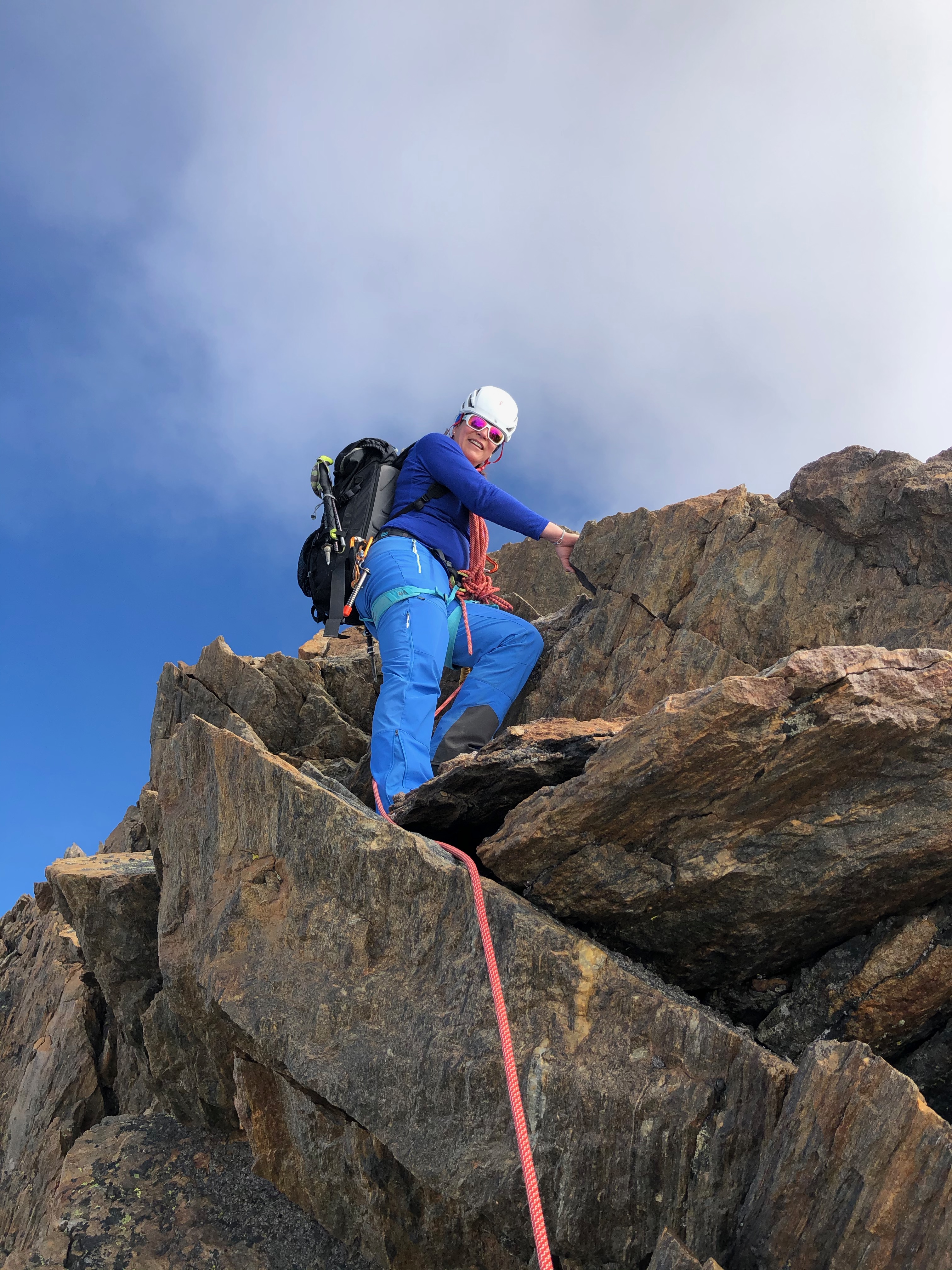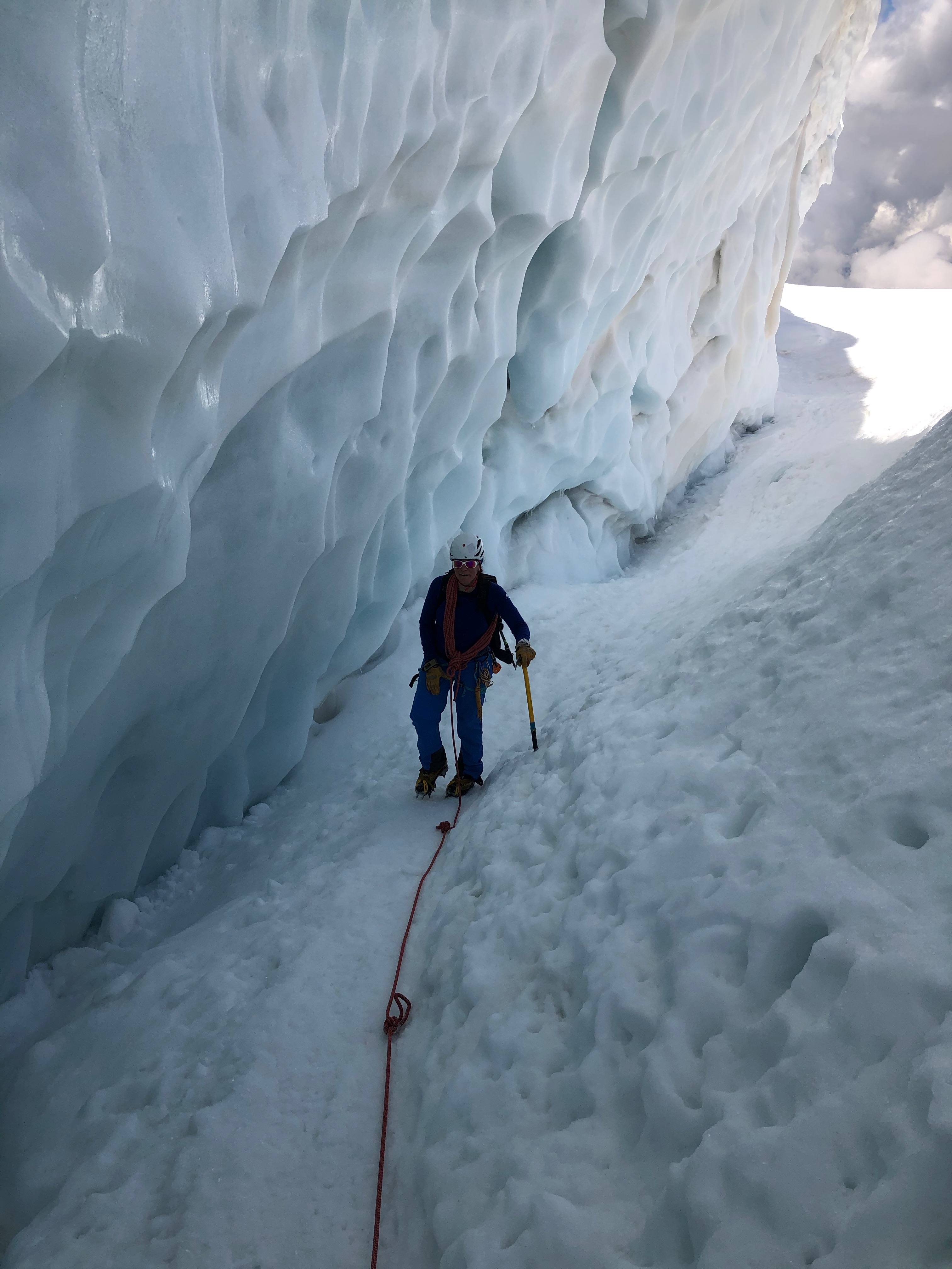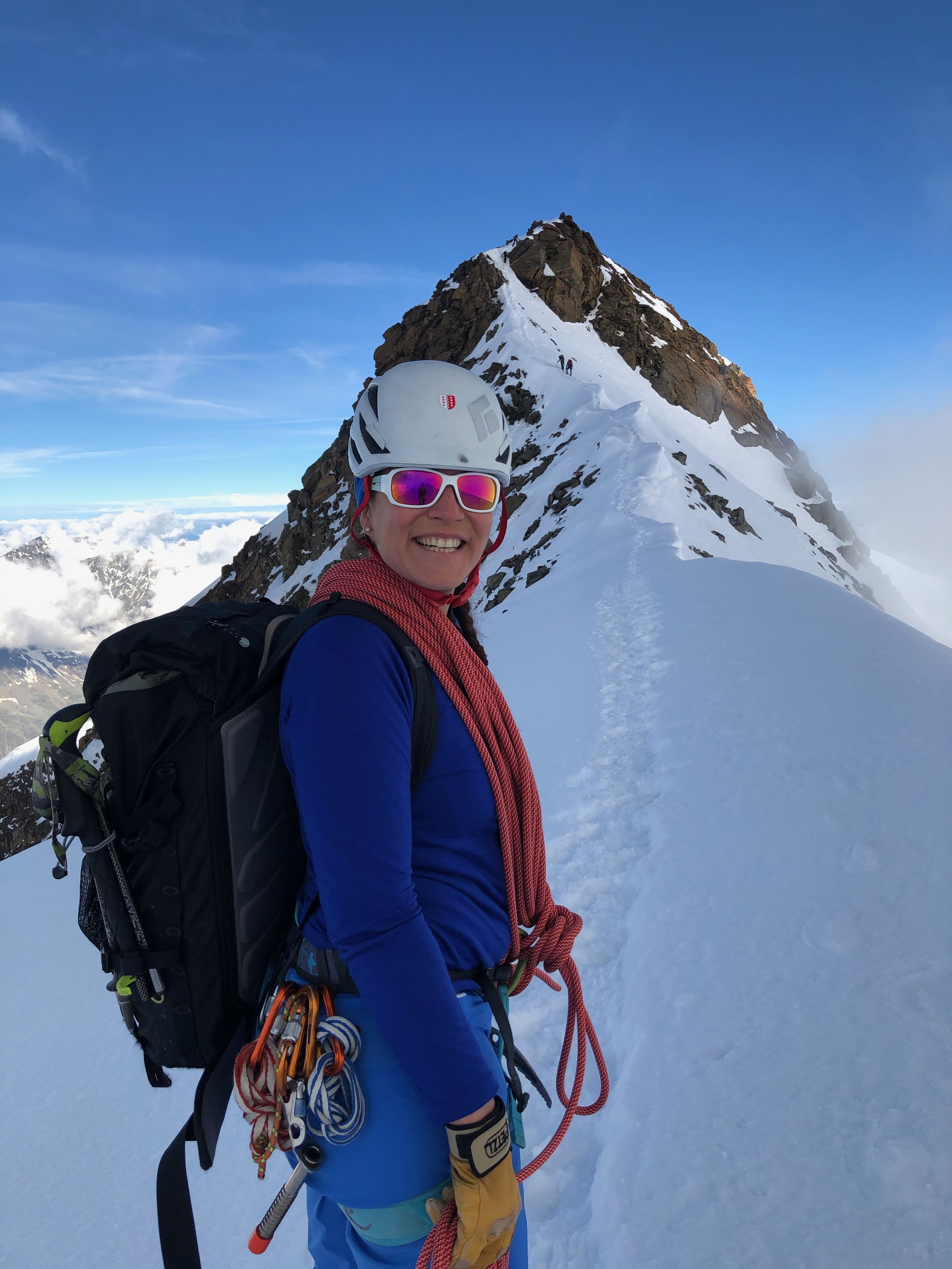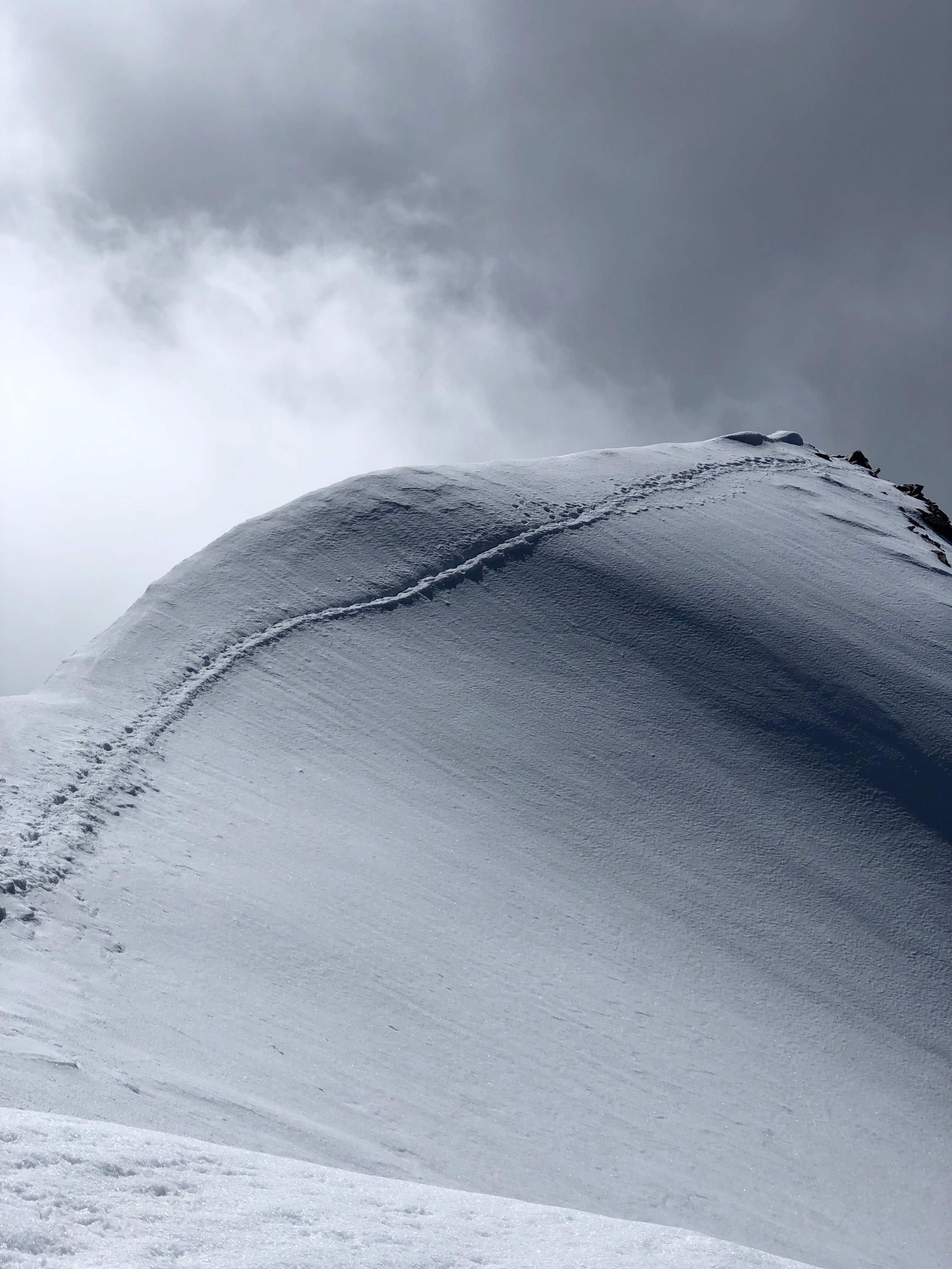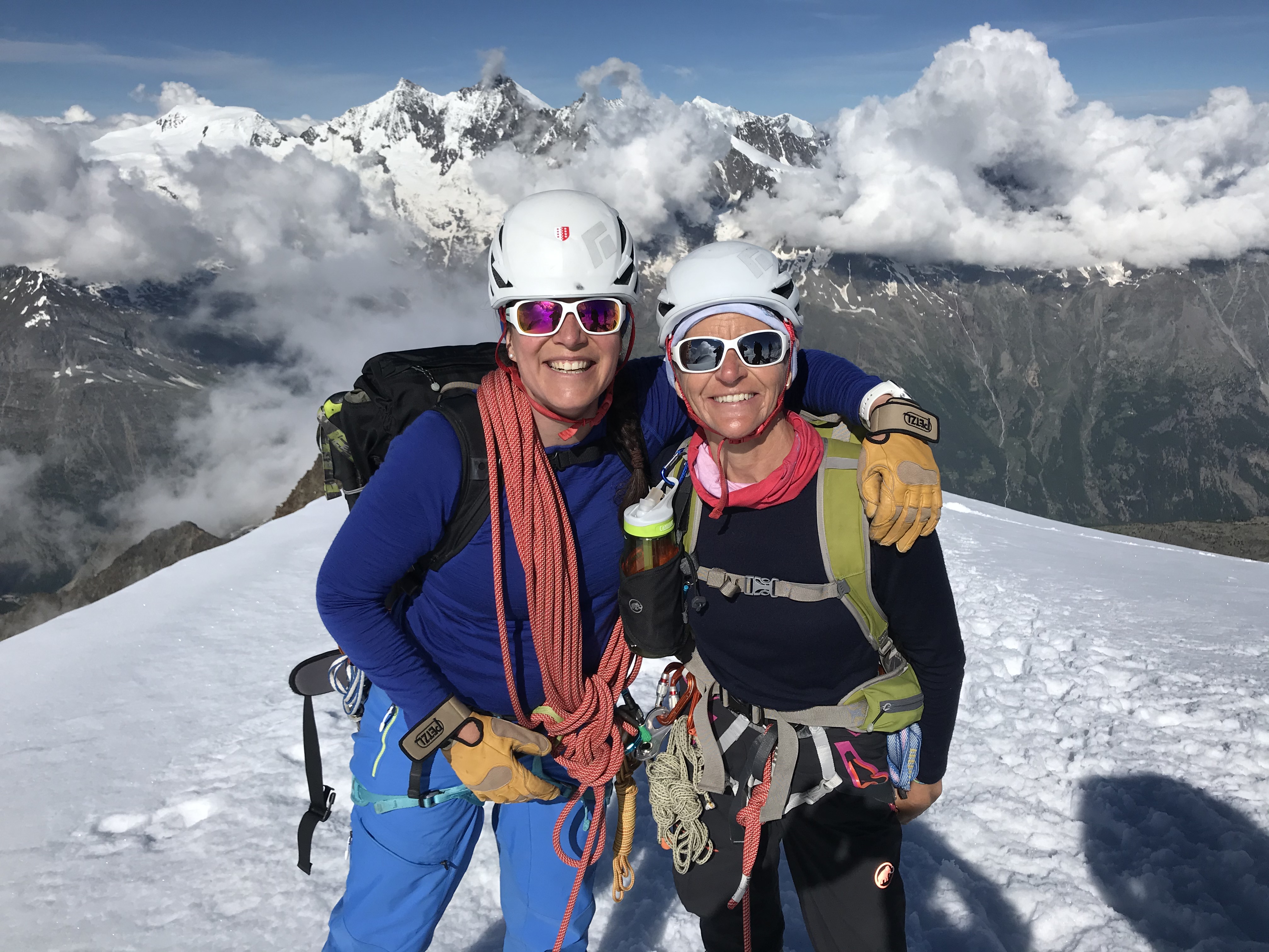 Et bien 8 ans plus tard j’ai toujours eu autant de plaisir. C’est vraiment une belle course, complète, avec de la grimpote sympa dans du beau rocher sans jamais se mettre au taquet, un final hyper esthétique sur un belle arête de neige et alors, une descente incroyable à travers les séracs de la face NW. Elle était encore en super bonnes conditions ce 1er juillet, les guides de la vallée ont fait un boulot de dingue. Mais il y a déjà quelques beaux trous, ça ne va pas durer.
