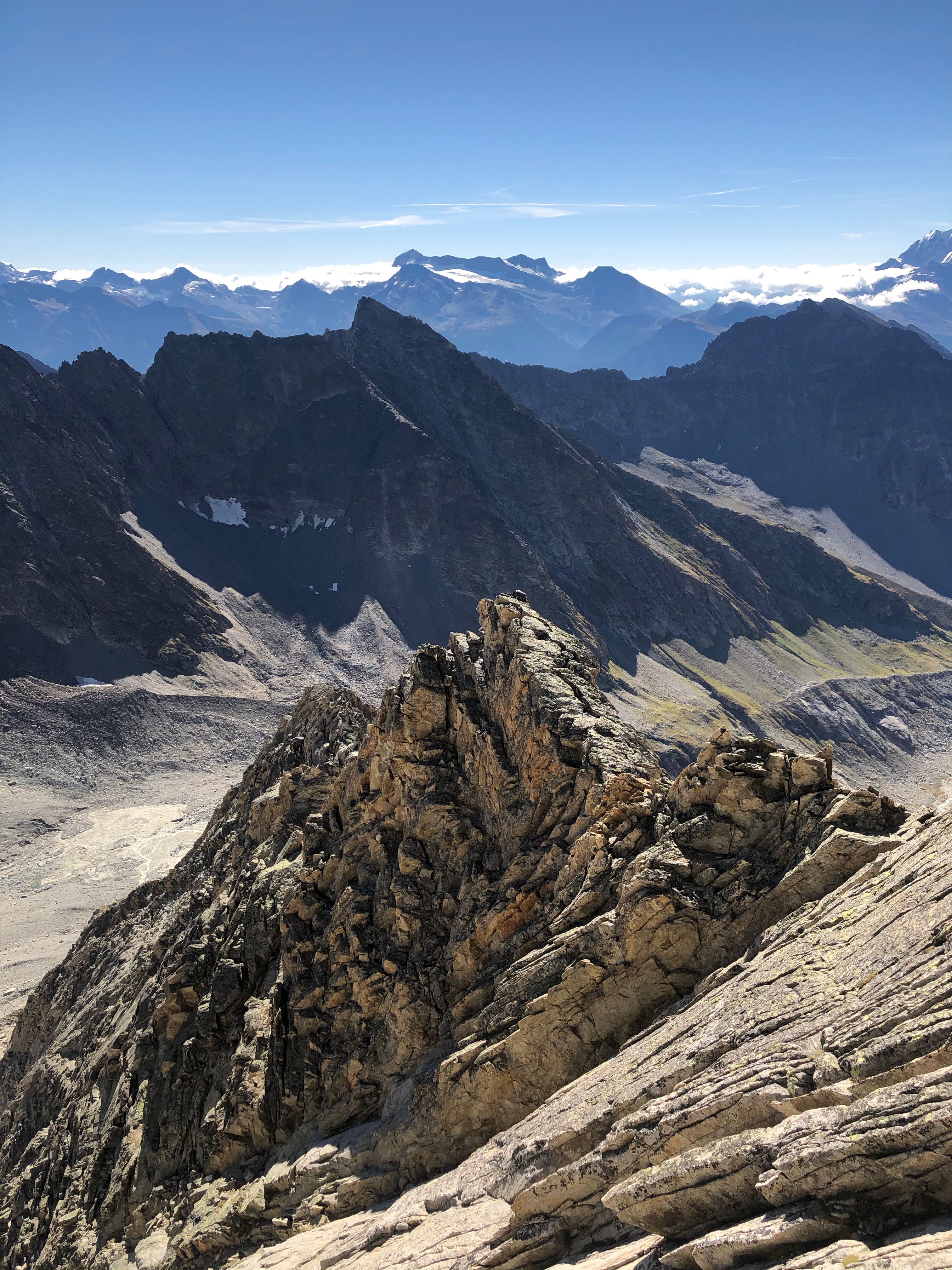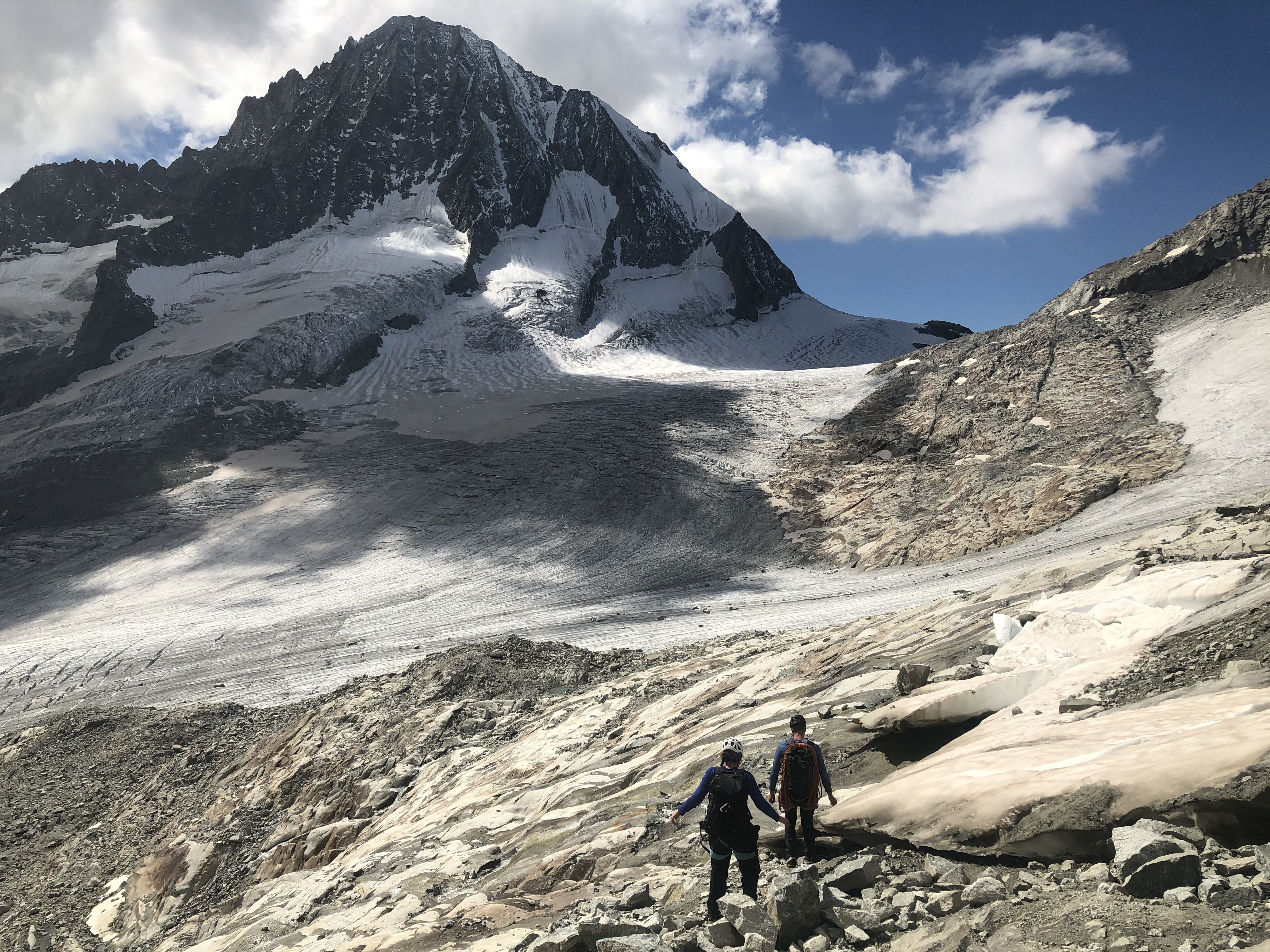 Vraiment, cette arête SE a tout pour plaire, et nos potes Bertrand et Agnès avait bien raison de dire que si ce Jägihorn-là était situé à Chamonix, on y ferait la queue toute l’année ! Au lieu de cela, on n’a pas croisé âme qui vive jusqu’à notre retour en cabane.
