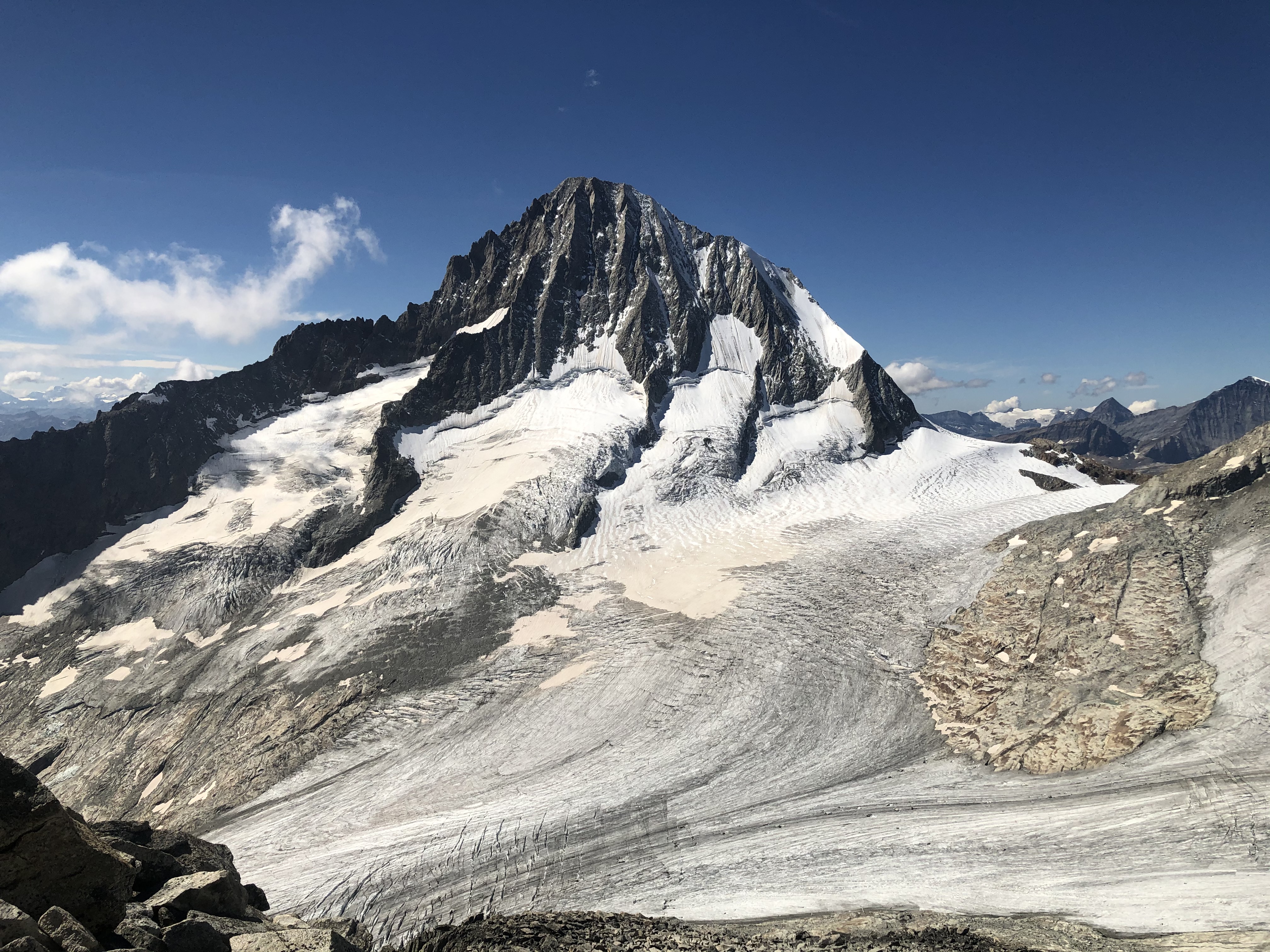 On connait tous le Jegihorn en dessus de Saas Grund, un sommet en rocher excellent parcourus de voies de tous niveaux, y compris du nôtre, où nous étions allé aérer nos méninges en 2015 et en 2017. Mais un Jägihorn peut en cacher un autre, et cette fois c’est sur celui du Baltschiedertal que nous sommes allés nous balader. L’accès est tout autre et la fréquentation par conséquent aussi !