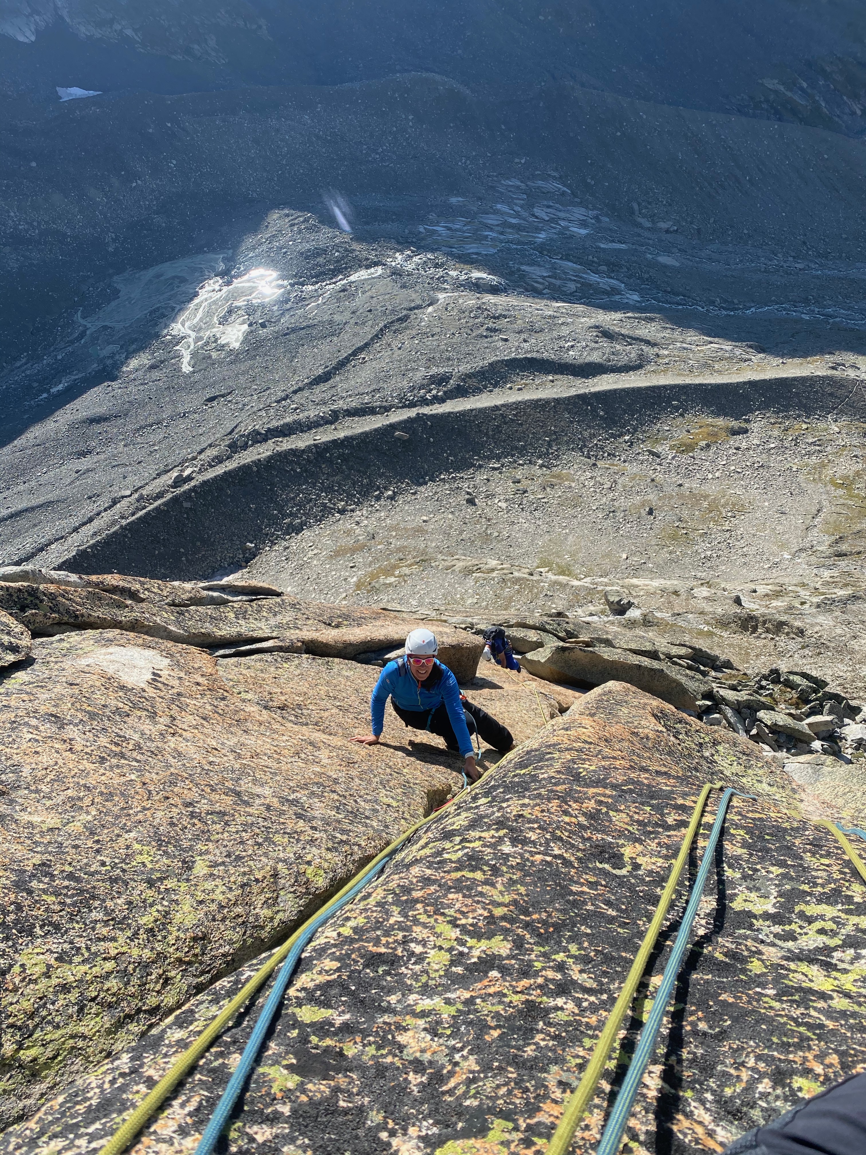 Il y aura quelques autres de ces fissures par la suite, mais moins pire que la première. On a une profonde admiration pour Manu, son sens de l’itinéraire et la façon dont il grimpe et se place. On a beau se rappeler que c’est son métier, on trouve qu’il a quand même la classe ce p’tit jeune !