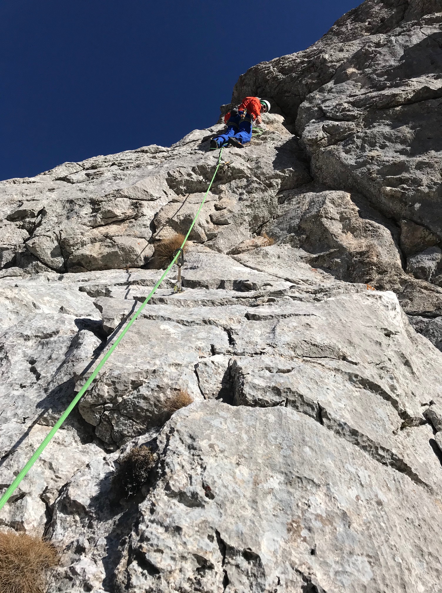 J’ai adoré cette course. J’ai adoré ne pas me prendre la tête pour chercher l’itinéraire, ni pleurnicher sur le manque d’équipement. Faire une partie en tête sans me faire d’ulcère. Profiter de cette célèbre montagne seuls. Une toute belle journée, vraiment.
