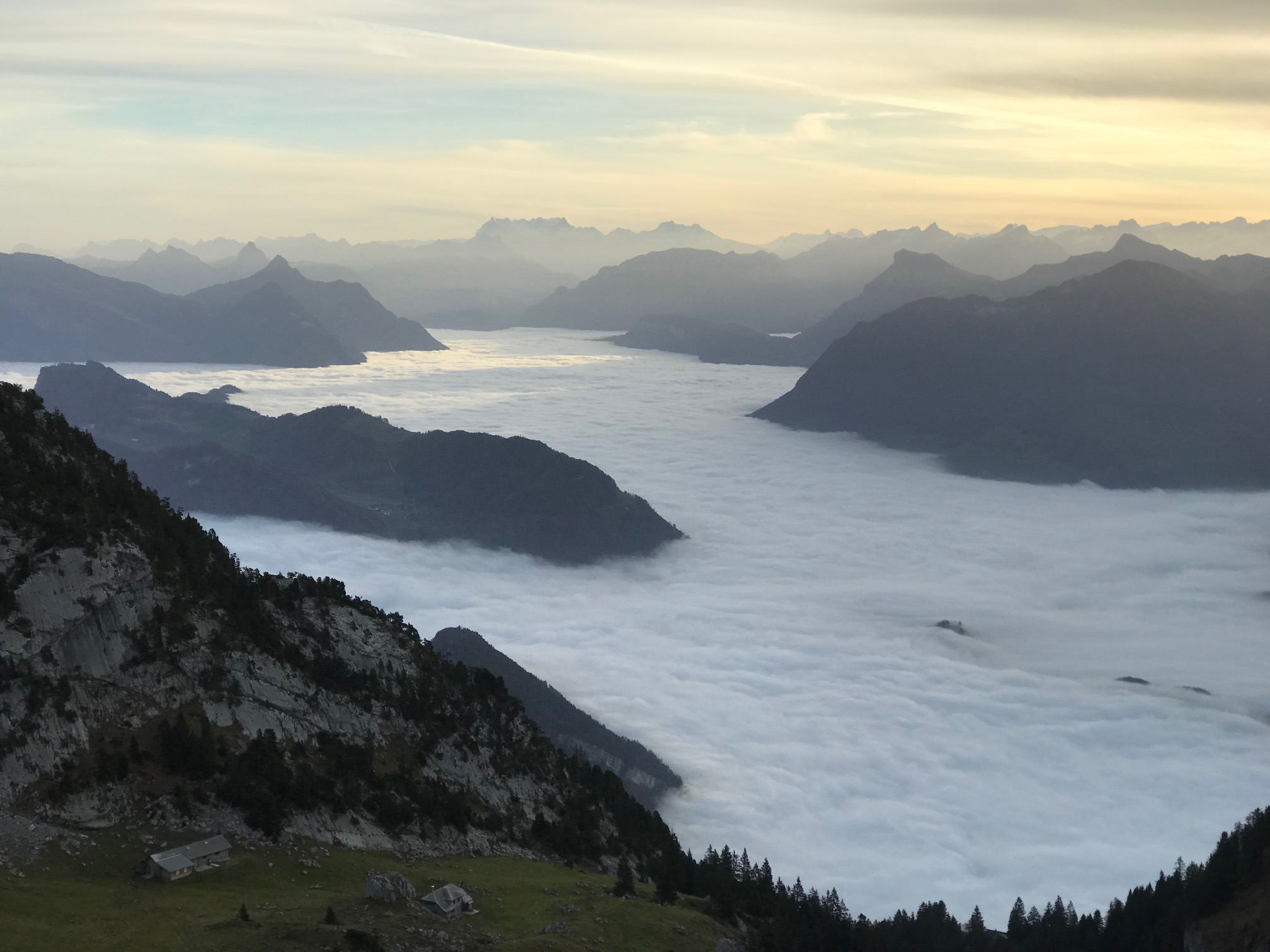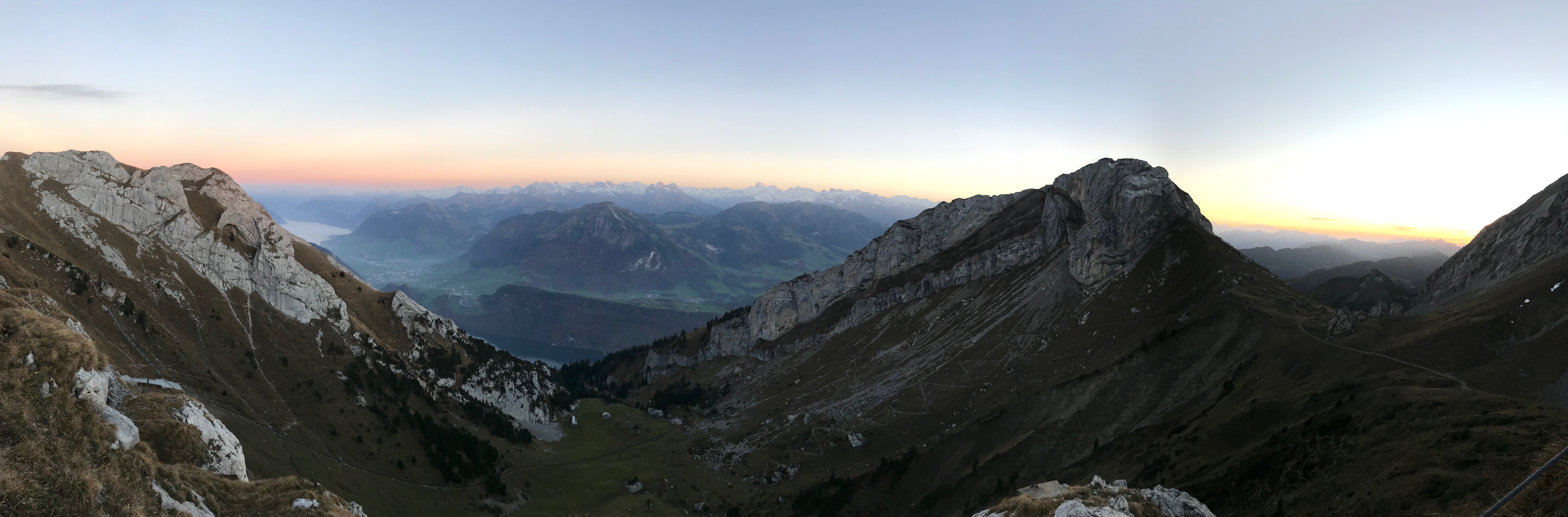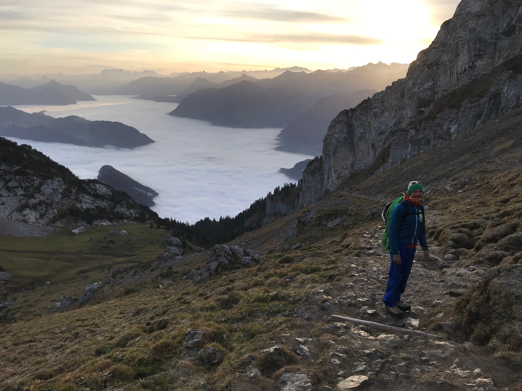 En même temps, on habite un pays fantastique dans lequel on nous laisse sortir à plus d’un kilomètre de chez nous, on n’a pas vraiment le droit de se plaindre. On profite donc de notre semaine de vacances pour (re)découvrir le Pilatus, montagne emblématique de Suisse Centrale, habituellement envahie de hordes de touristes asiatiques. On part tranquilles le lundi matin, et on passe l’après-midi à grimpoter sur un petit jardin d’escalade sympa à 30 minutes du sommet. On se trouve une cabane 5 étoiles sur le chemin qui contourne l’Esel et on passe une super soirée, à admirer le coucher de soleil sur le lac des 4 cantons. La nuit sera finalement bien moins fraîche que prévu à l’abris de la rosée, et on se lève frais et dispos pour attaquer cette Galtigengrat.
