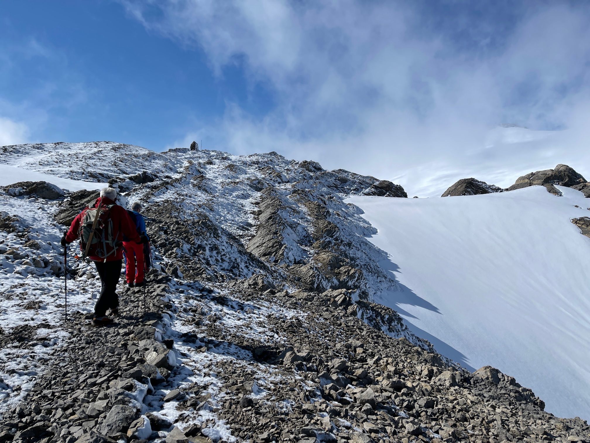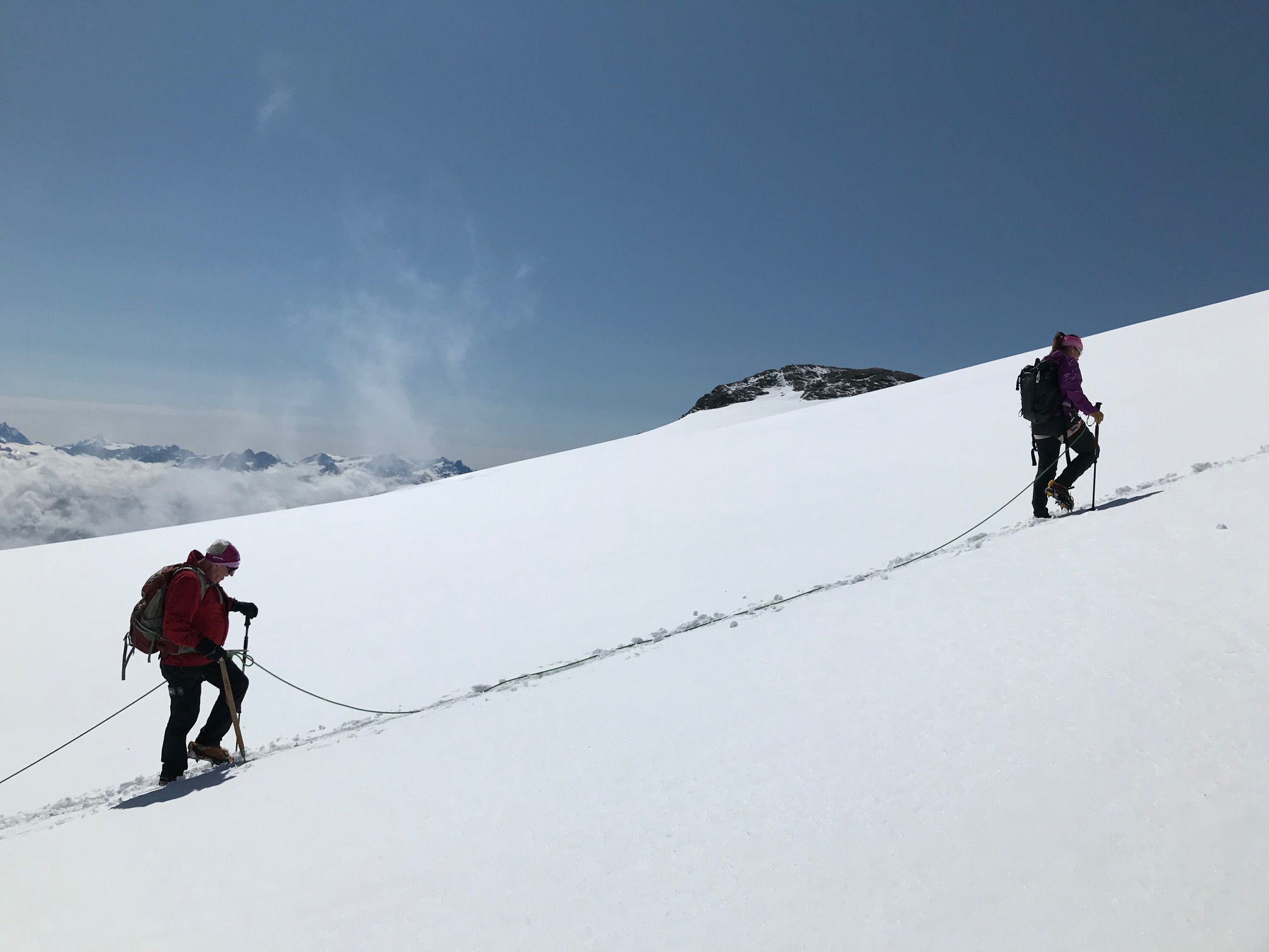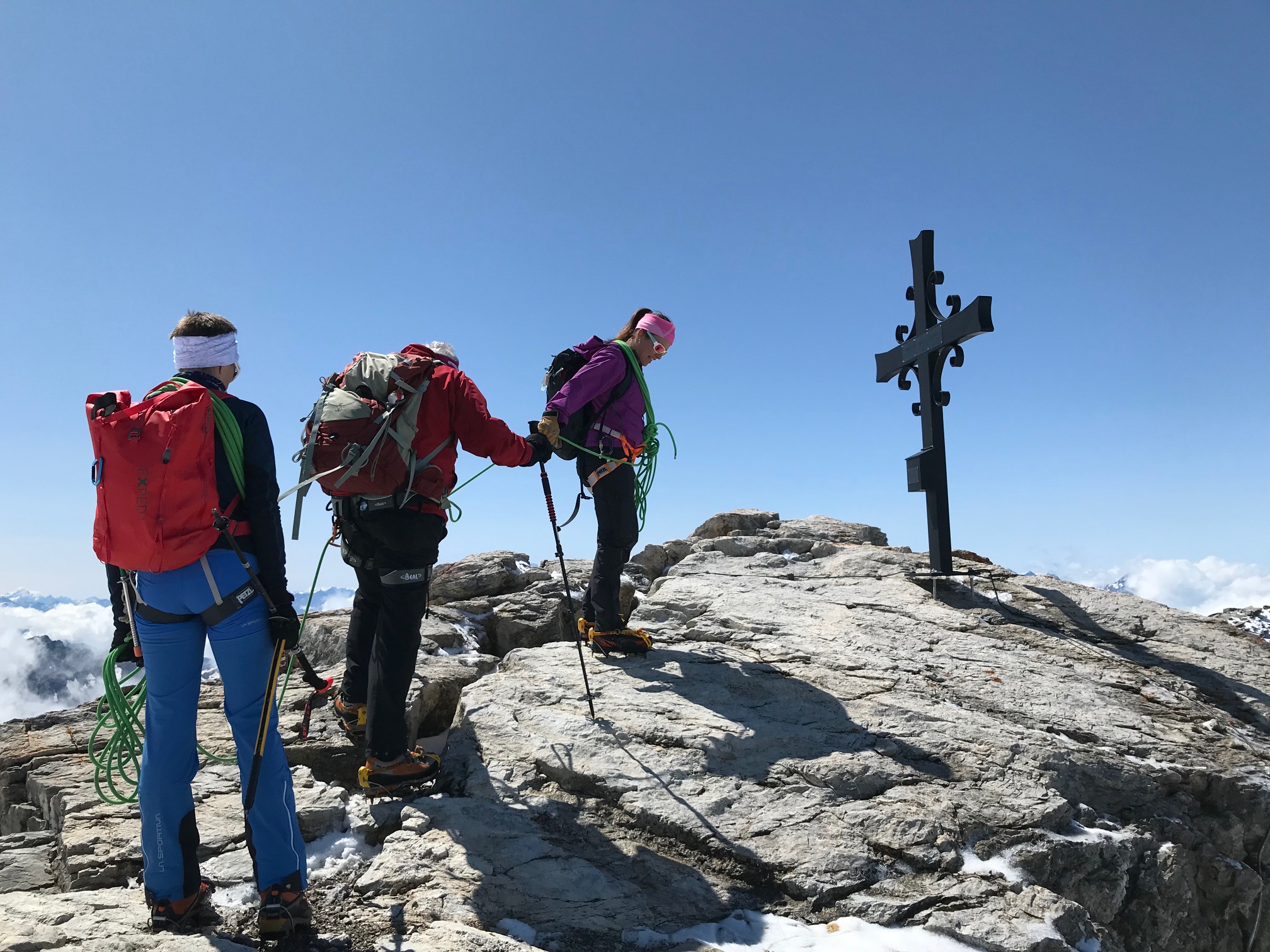 La suite sur le glacier est sans difficulté jusqu’à la croix sommitale. Un immense bravo à nos vaillants coéquipiers pour cette belle journée !