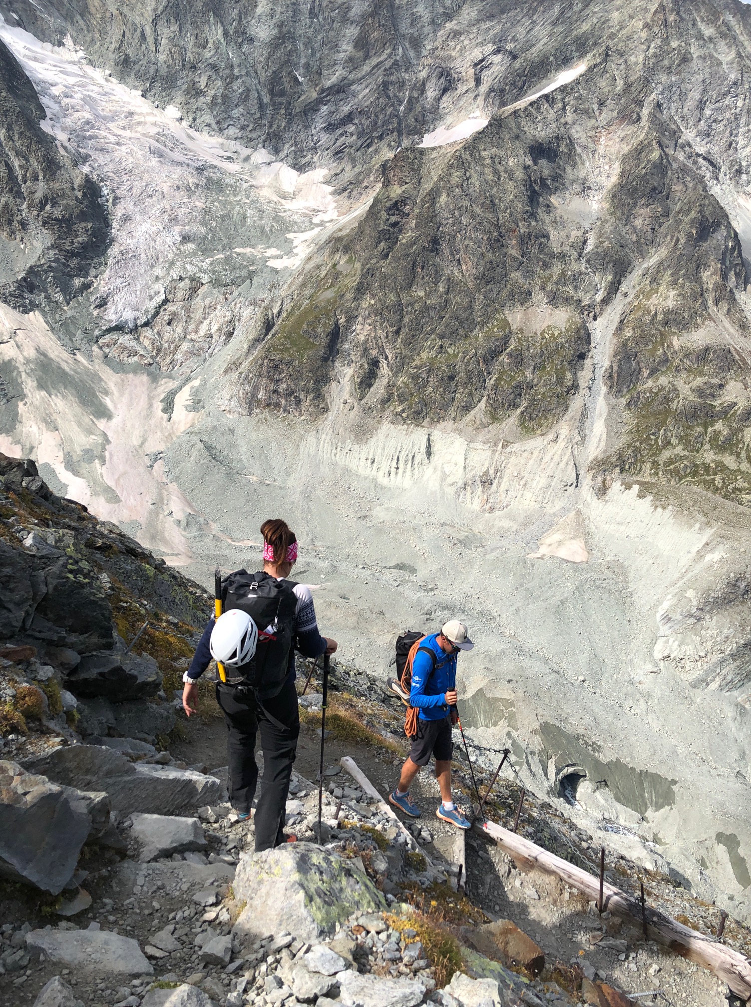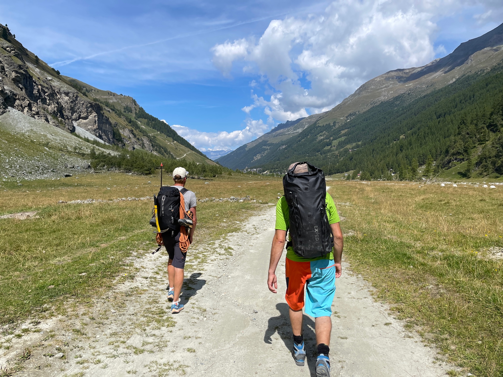 On repasse dire au revoir à nos p’tits copains de la cabane avant de descendre à Zinal. Quel plaisir de sentir l’odeur de l’herbe puis de la forêt après 5 jours passé dans la roche et la glace. On est un peu déphasés en arrivant à Sierre où il fait une cuite d’enfer (à notre échelle, on est d’accord).