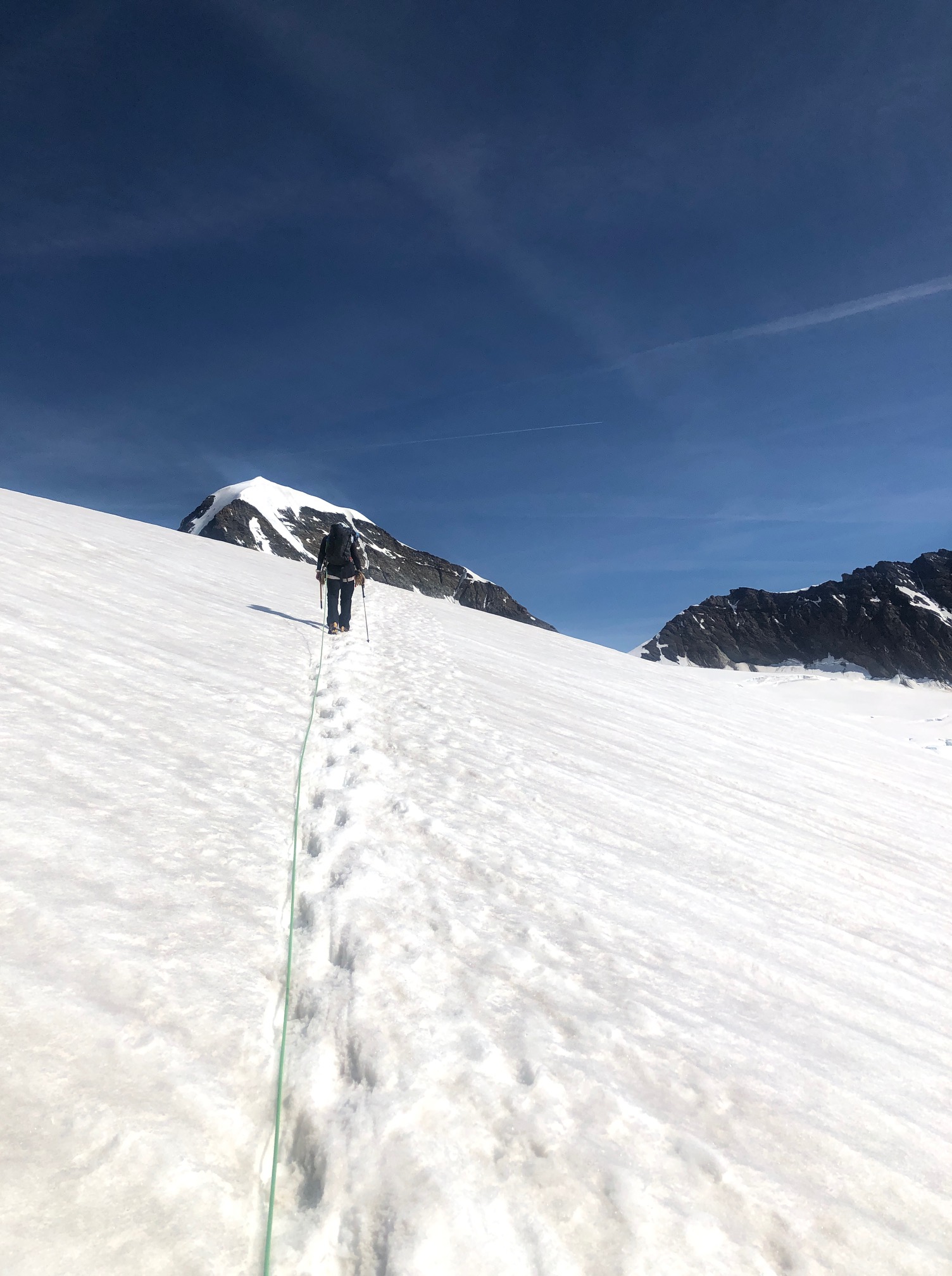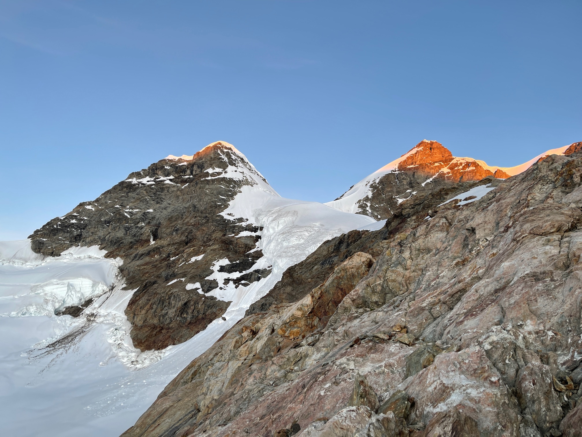 Pål propose la Jungfrau. Ouai pourquoi pas… il reste de la place à la cabane de Mönchjoch pour le lendemain !
