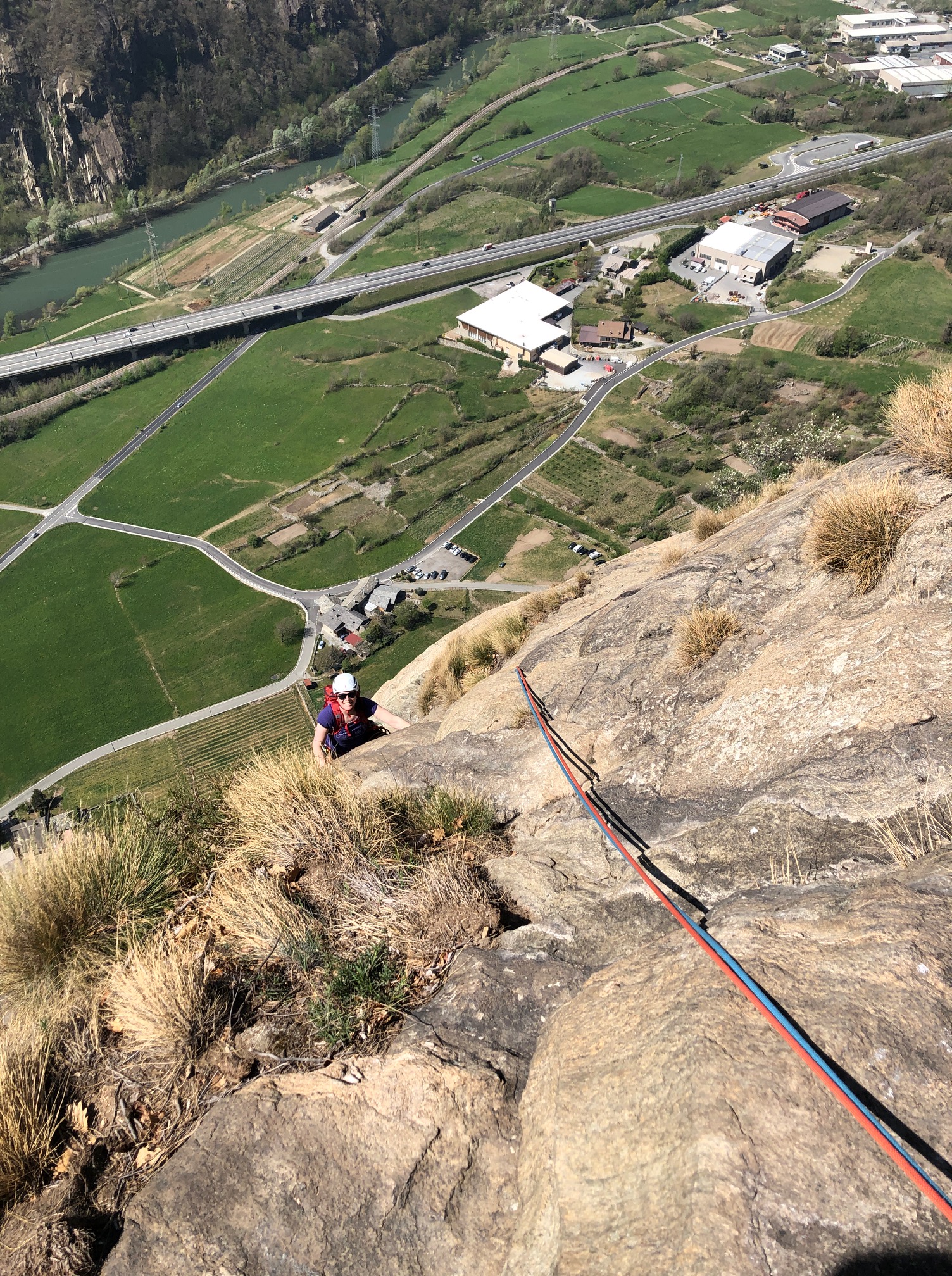 Après une ou deux couennes de chauffe, on commence par faire le Spigolo Verde dans le secteur Serra di Biel au dessus de Courtil. C’est super beau et le rocher est génial. C’est une chouette voie pour prendre confiance en début de saison, c’est assez facile et il n’y a pas vraiment de sensation de vide.