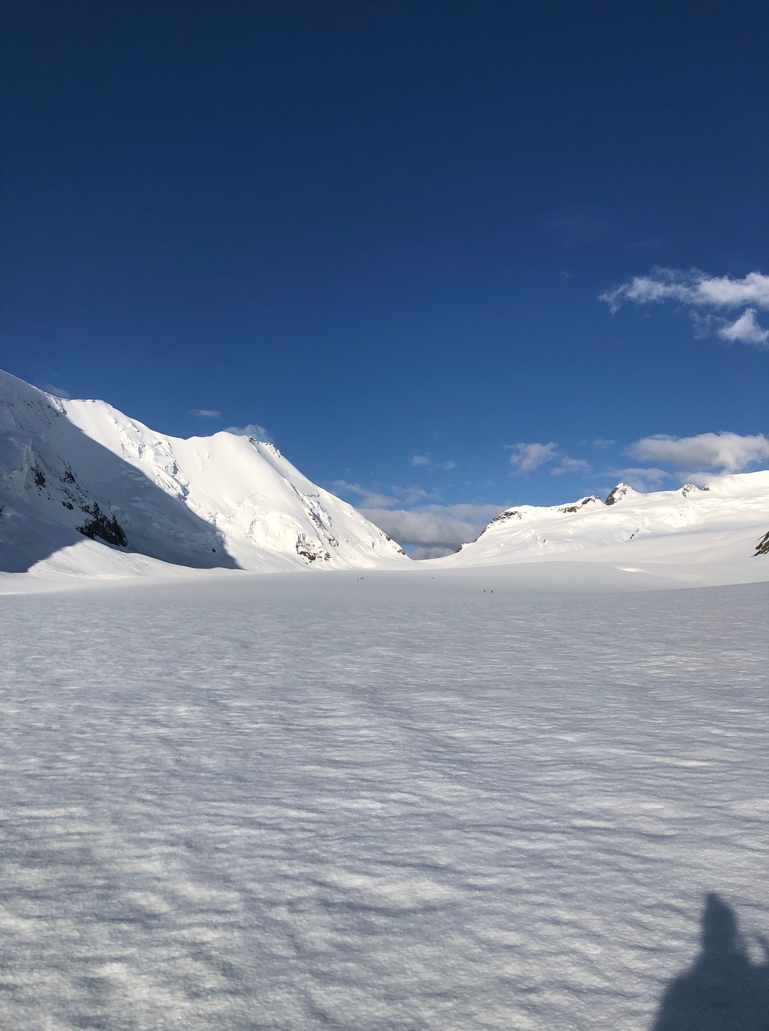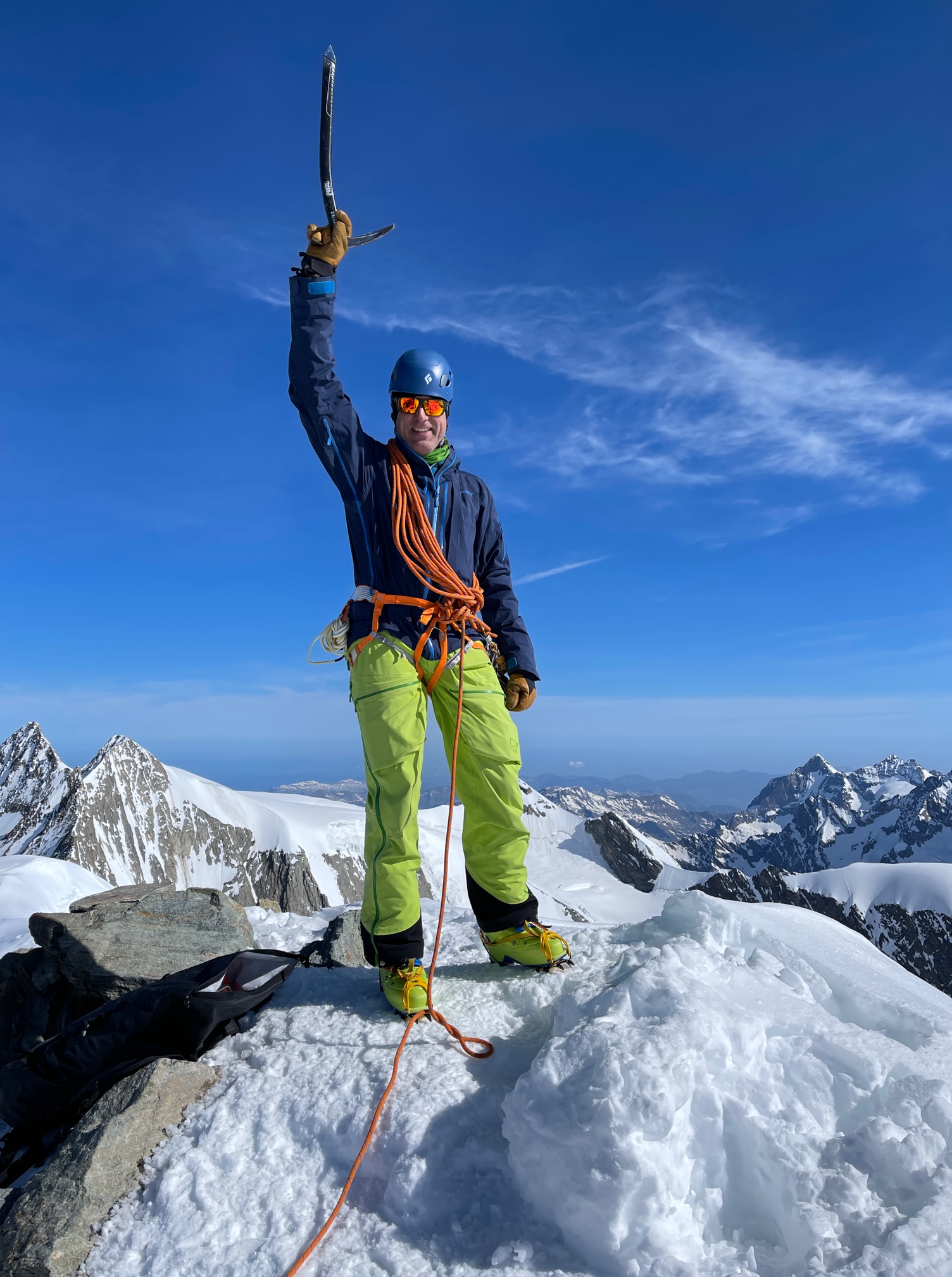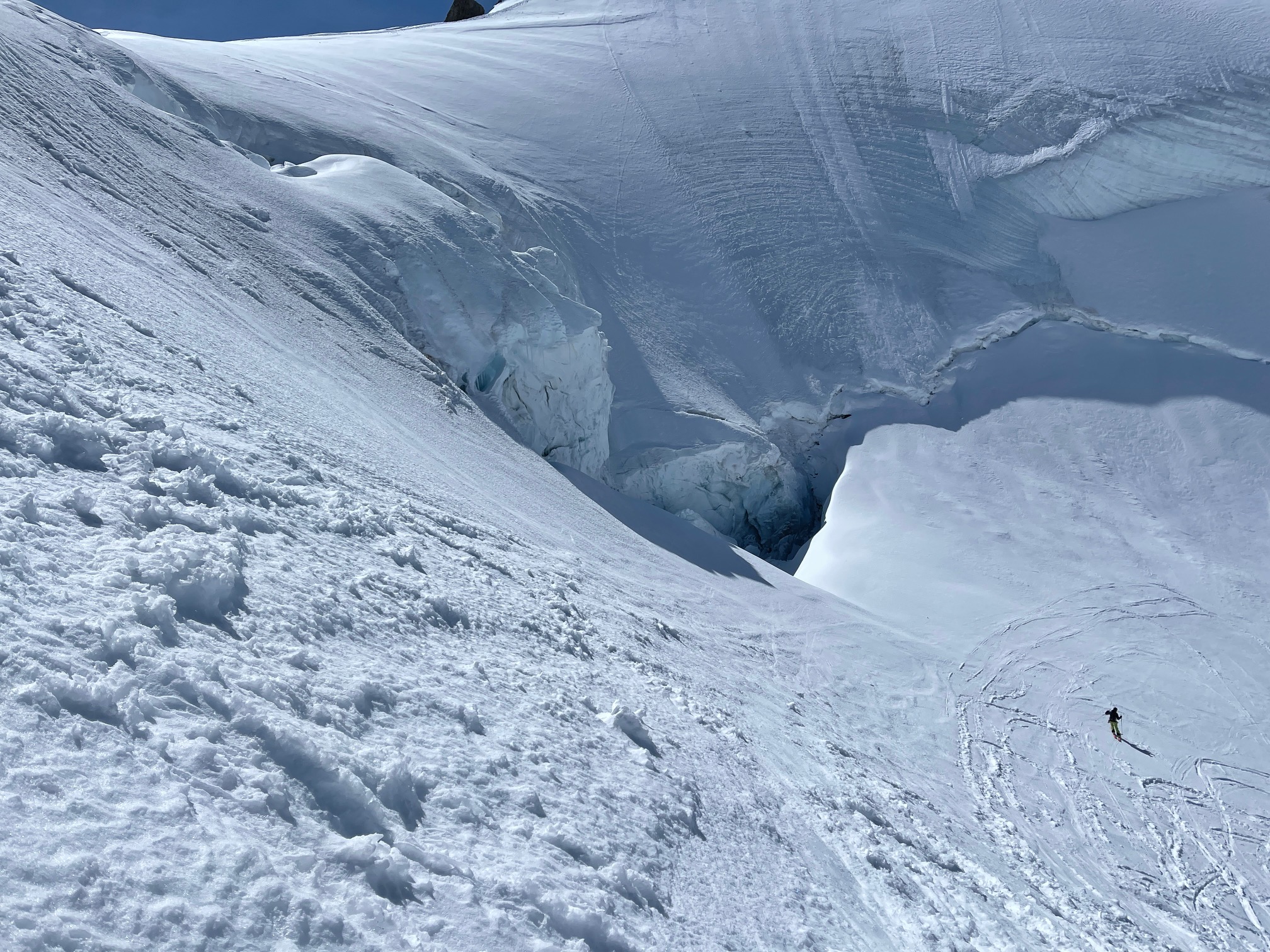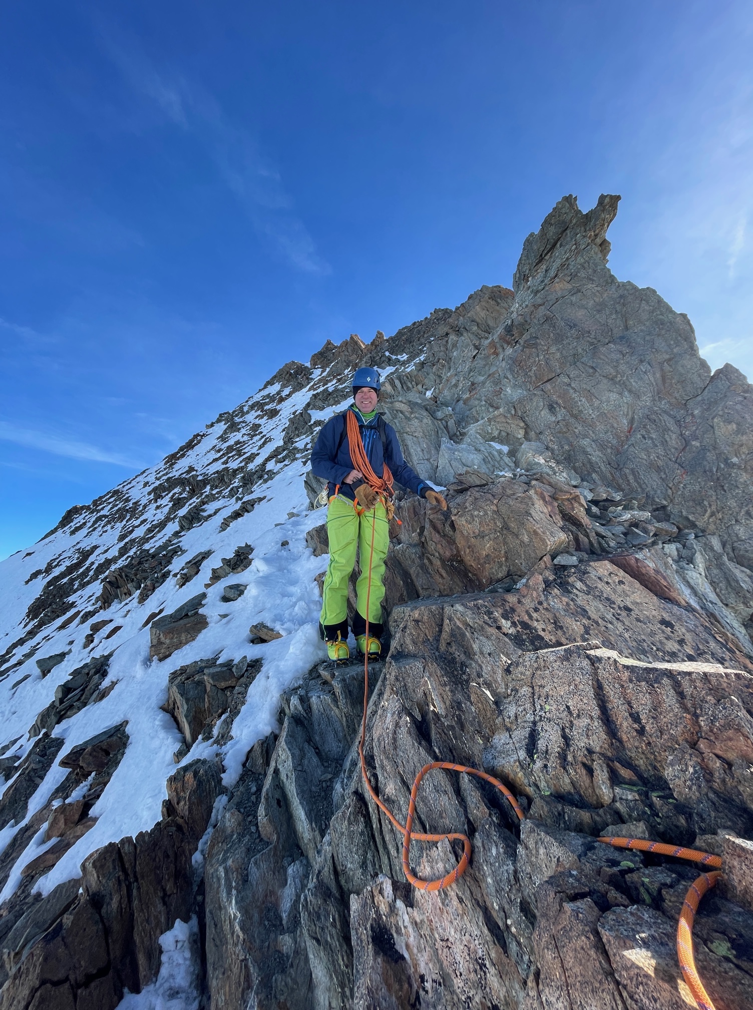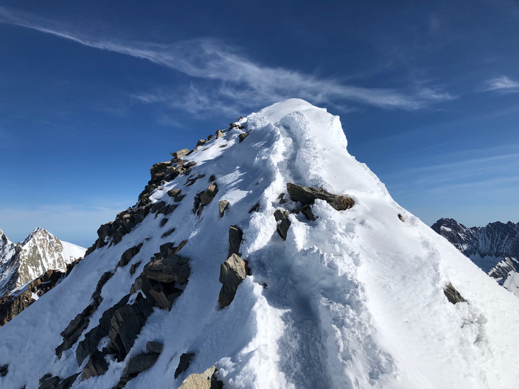 On arrive au dépôt des skis sans avoir vu le temps passer, et on s’engage sur l’arête. C’est en excellentes conditions comme tout le reste de l’itinéraire. On est émus d’être ici, sur ce sommet où l’alpiniste qui a donné envie à des générations de p’tits romands de faire de la montagne a perdu la vie. Erhard, on pense fort à toi ❤