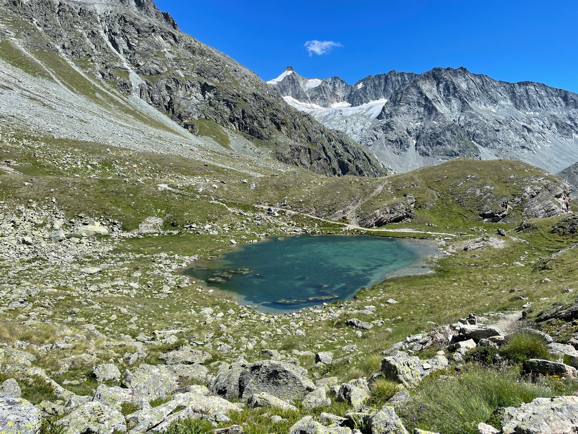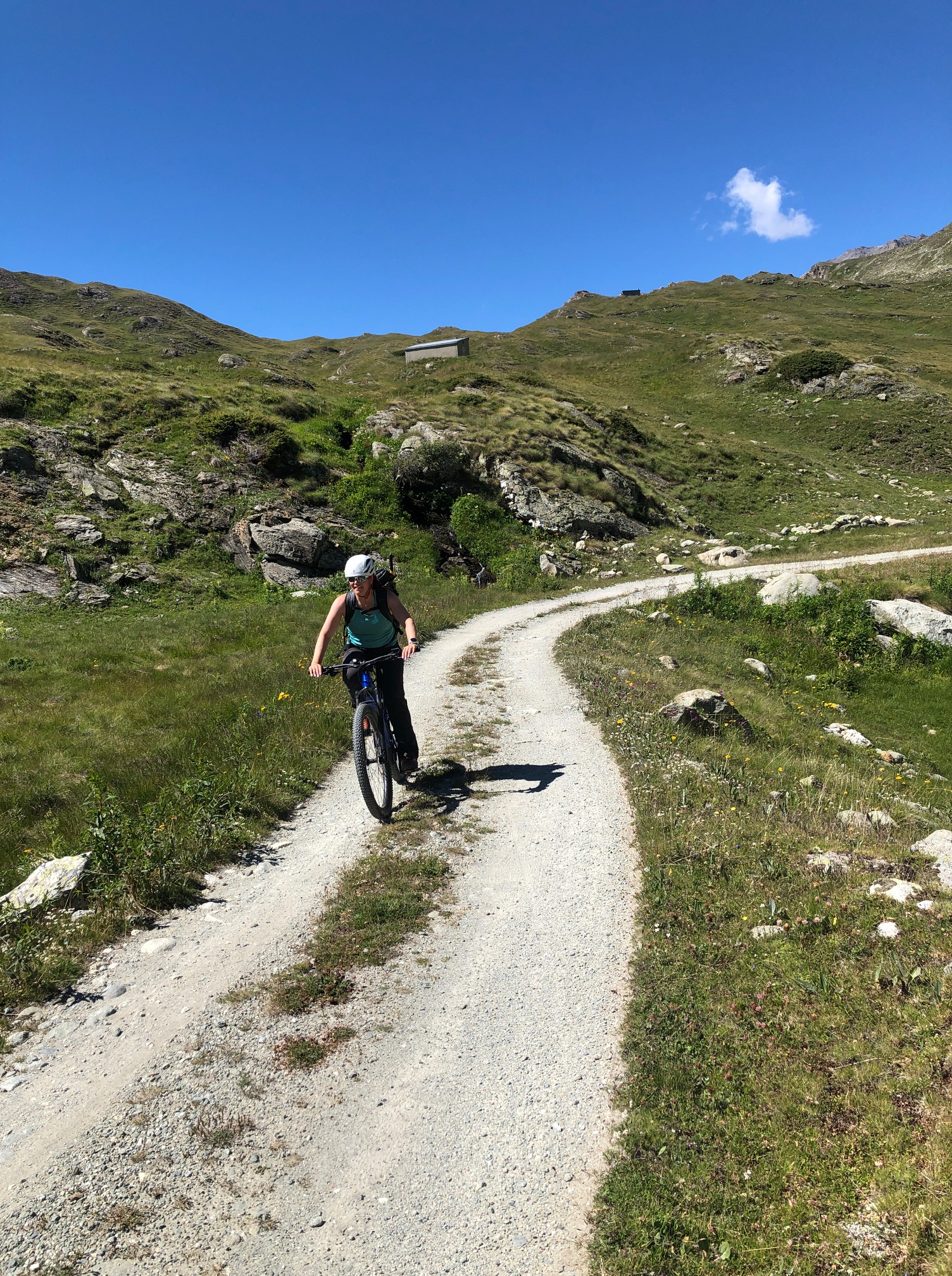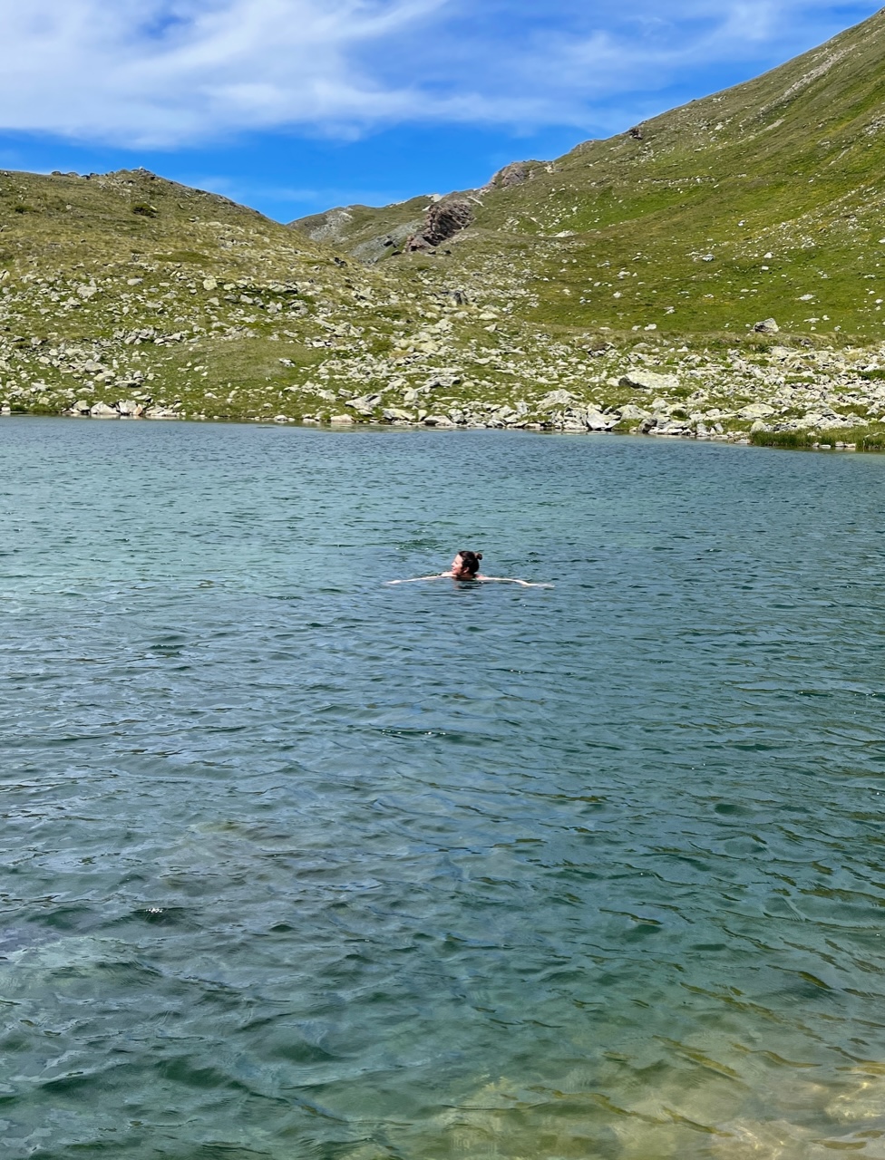 On enfourche nos vélos électriques, quelle invention merveilleuse pour les feignasses en puissance que nous sommes. En quelques coups de pédales (1h15 😳), on se retrouve à la cabane où je peux profiter du magnifique petit lac pour piquer une tête. La cabane a été rénovée de fond en comble tout en gardant l’ancienne bâtisse en pierre, c’est vraiment très réussi. Et surtout, la cabane est gardiennée par Sophie et Olivier qui, avec toute leur équipe, mettent beaucoup de cœur et d’énergie pour accueillir leurs hôtes. On reviendra, juste pour faire un plouf et manger un rösti !