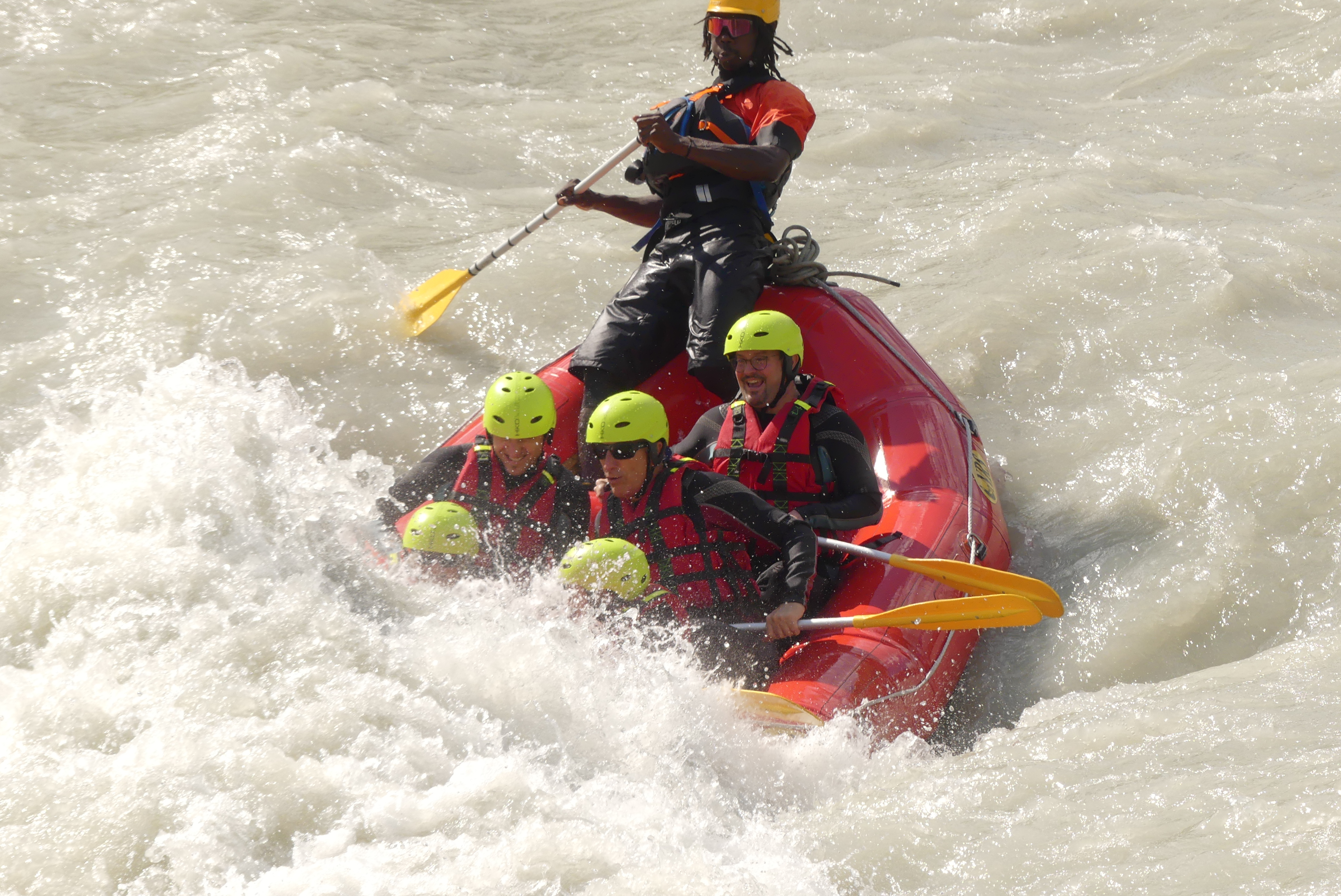 Après un briefing, on met le raft à l’eau et c’est parti ! On n’a pas vraiment le temps de se mettre dans le bain, on file déjà à toute allure et on se prend des monstres vagues (on nous dira seulement après que l’eau est à 6°) purée, ça réveille !