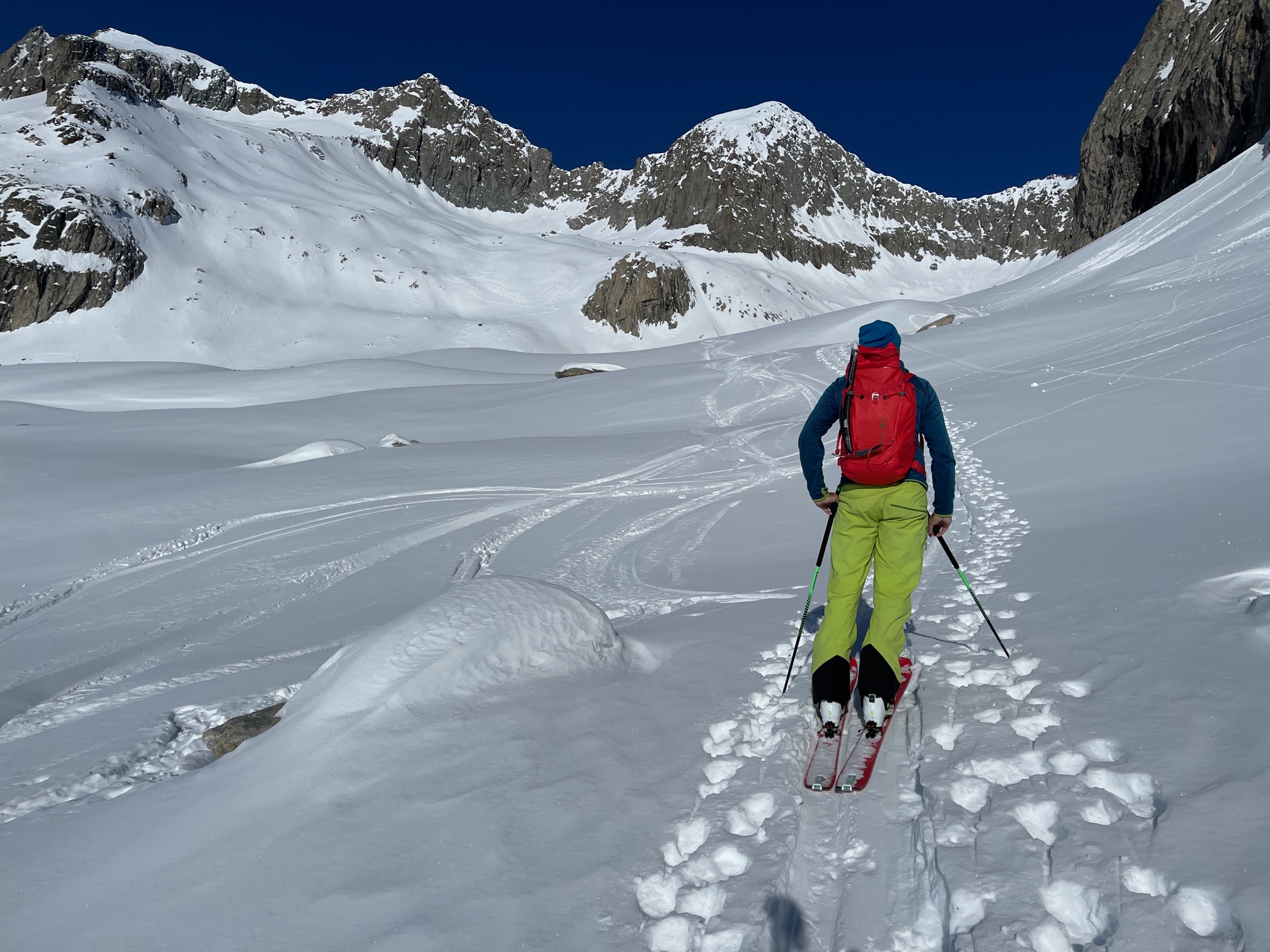 Lors de notre passage cet hiver, le tunnel était fermé (comme à chaque fois que les conditions sont bonnes, mais c’est une autre histoire). Départ du bas donc, évidemment il y a plus de dénivelé, mais surtout il y a aussi beaucoup moins de monde. On était 4 à faire cette course un dimanche de grand beau. C’est pas la foule du Grand Saint Bernard, on dira.