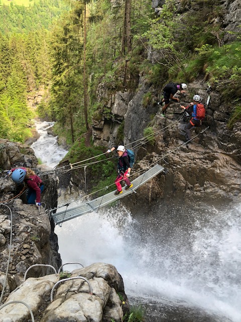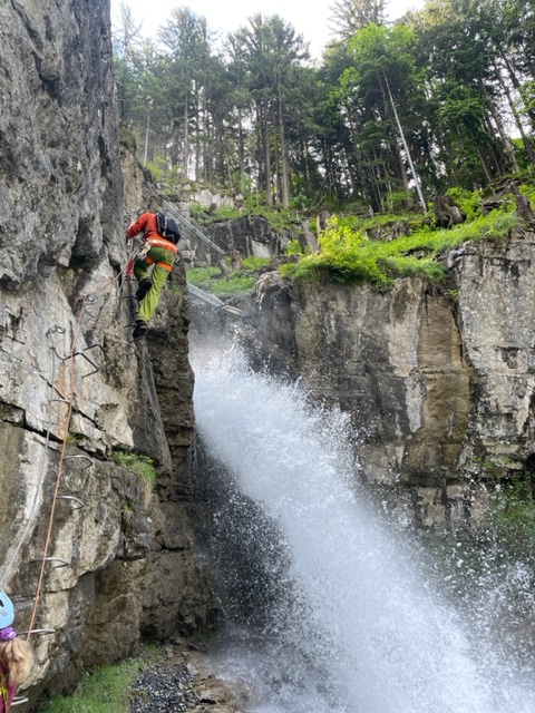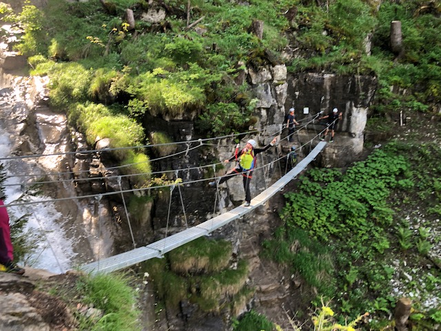 Le débit de la rivière était important, amis canyoneurs, il faut attendre encore un peu. On s’est bien fait arrosé sur le premier pont. Il n’y a pas de difficulté particulière et c’est assez court, c’est une chouette via pour l’initiation.