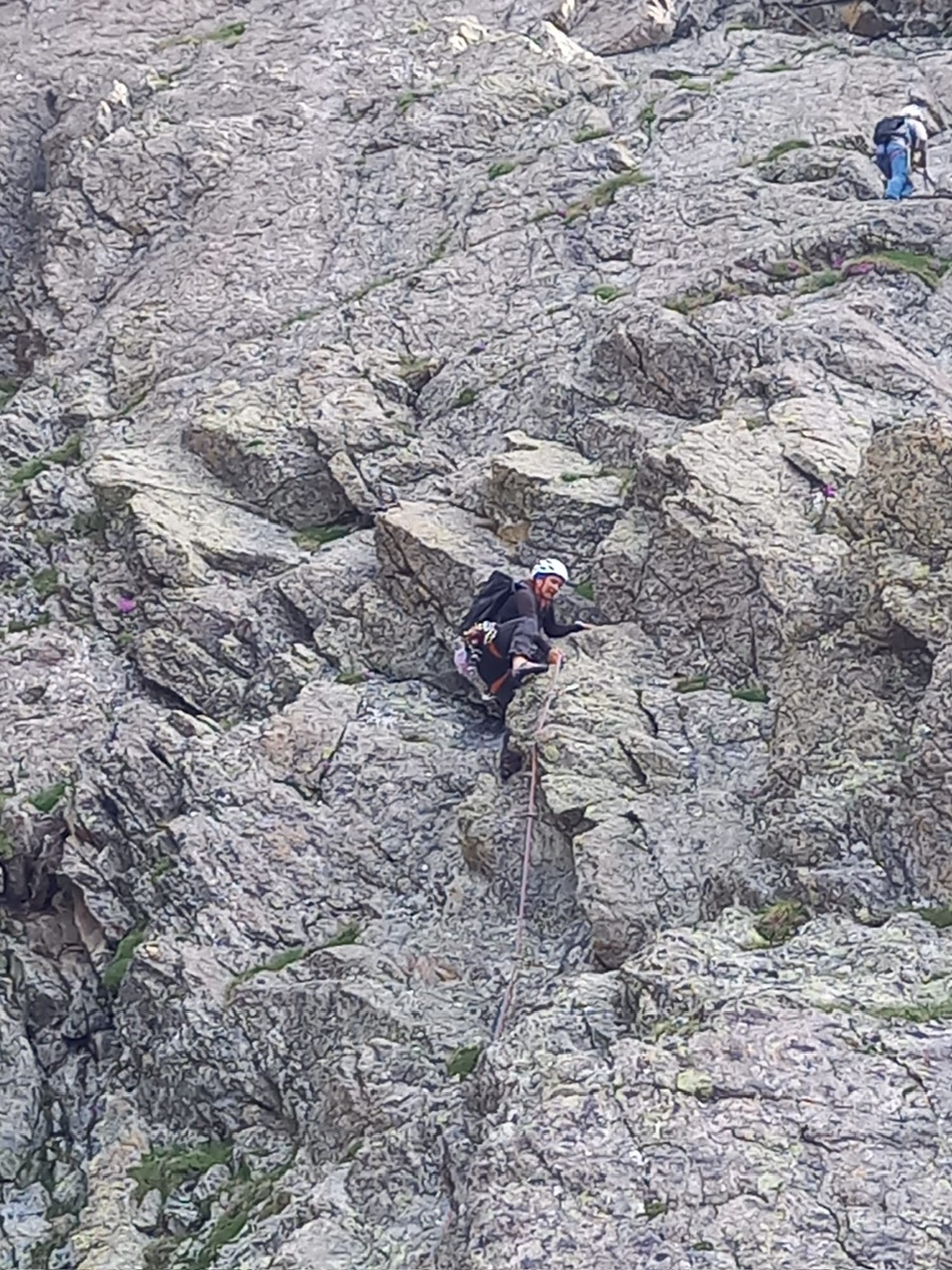 C’est cette voie qui avait attiré mon attention sur ce coin il y a des années. Et je n’ai pas été déçue. C’est un dièdre presque parfait, en bon rocher, prisu et vertical. On a tous adoré !