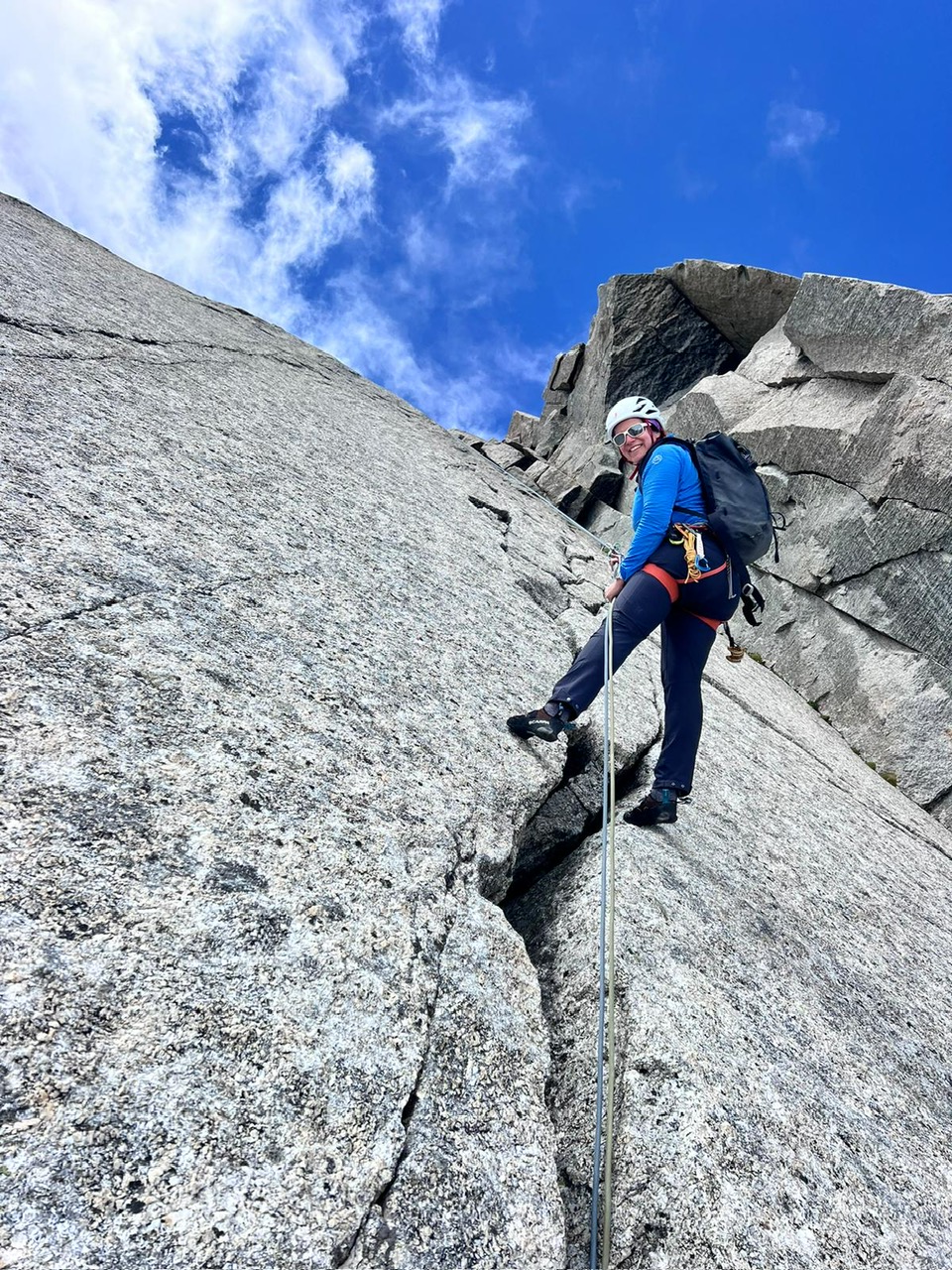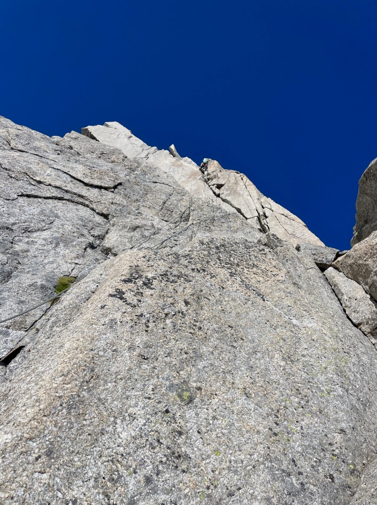 La suite se corse un peu, pour moi qui ne grimpe que très très rarement sur du granit, ça demande un minimum de réflexion. Les parties dalleuses, ça va je gère, mais les fissures pas toujours.