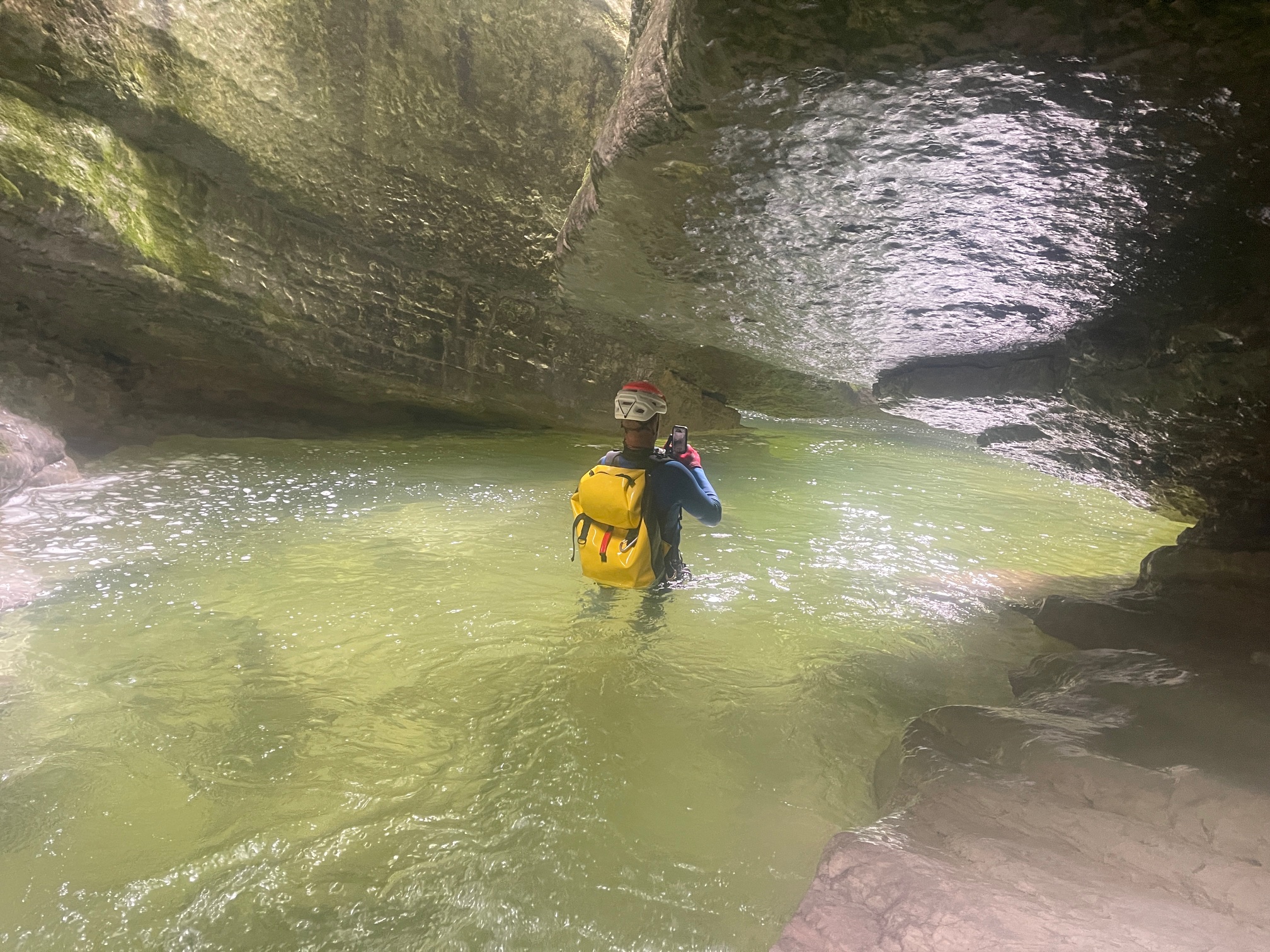 5 minutes d’approche ce matin, c’est classe. Le premier rappel met tout de suite dans l’ambiance de la journée, une gorge splendide, encaissée et aquatique.