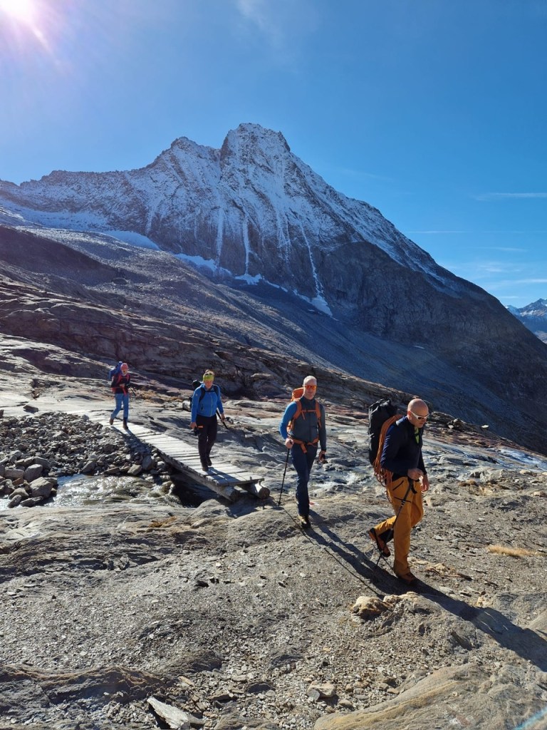 La météo en a décidé autrement. Un puissant anticyclone stagne sur les Alpes, il fait grand beau en Valais (et bien dégeulasse sur le plateau 😅🤣) et je sors ma to-do list des courses pas trop dures. Je propose le Wasenhorn, les copains ne sont pas chiants et toujours partants, même quand il faut se lever tôt pour traverser toute la Suisse un samedi matin. Claude arrive de Thurgovie, on le récupère à la gare de Viège, Claudia et Débora nous rejoigne au col. L’équipe est au complet, c’est parti.