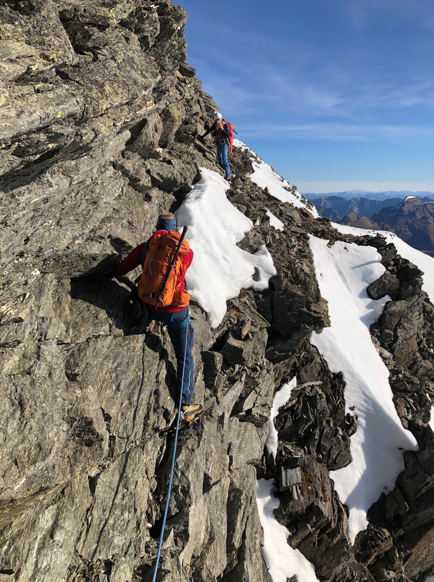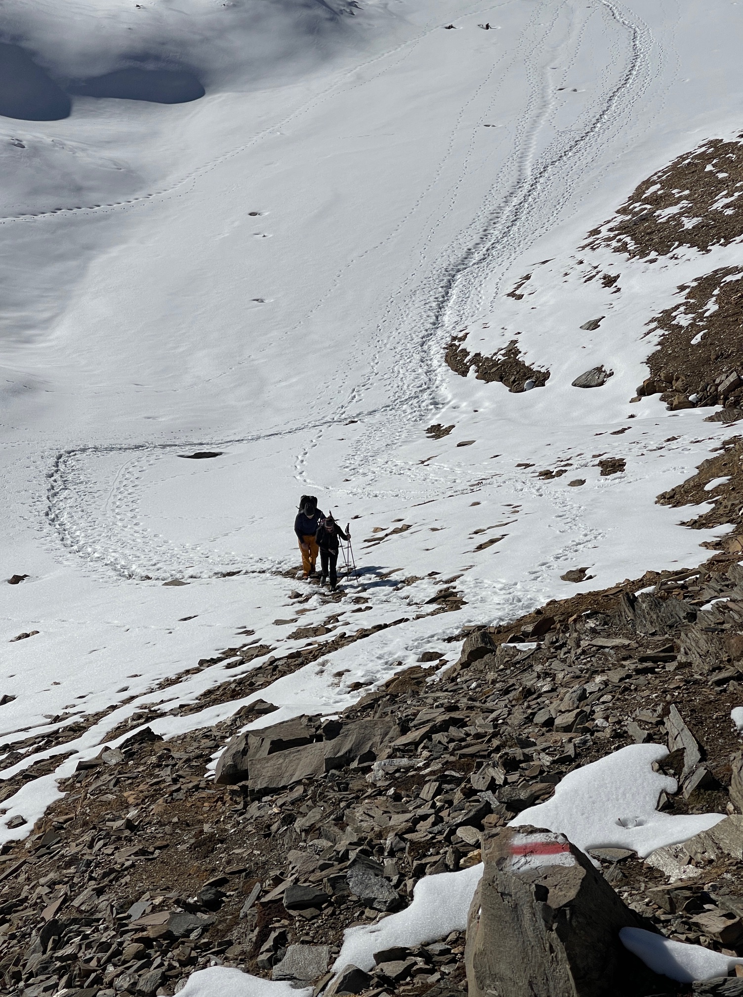 Finalement la descente est beaucoup plus efficace que la montée, même que notre Claudia a pris quelques raccourcis pas très réglementaires ! On récupère quelques affaires à la cabane et on descend au col, le sourire vissé au visage et le coeur plein de gratitude d’avoir pu vivre une si chouette journée avec des personnes qui nous sont chères !