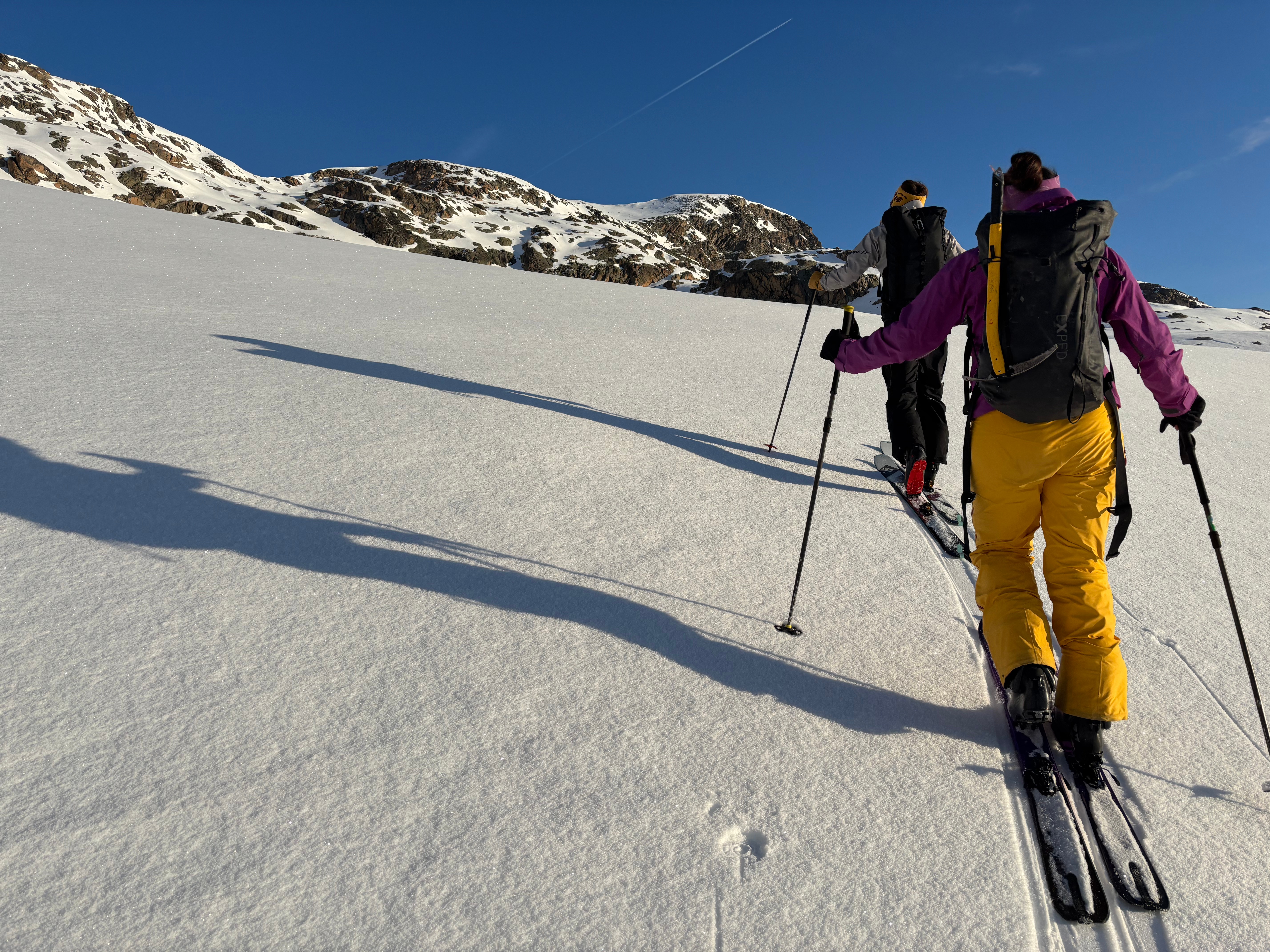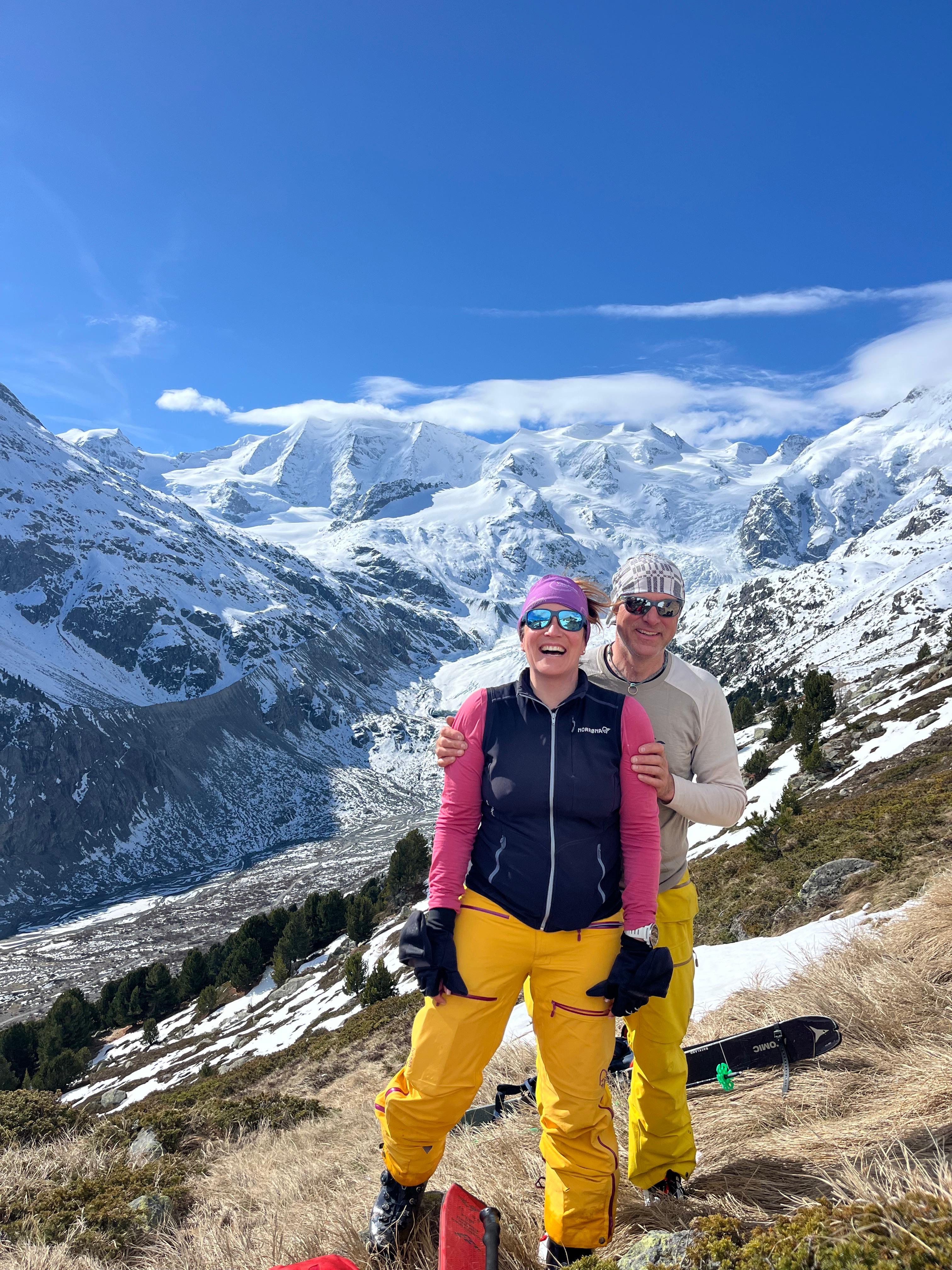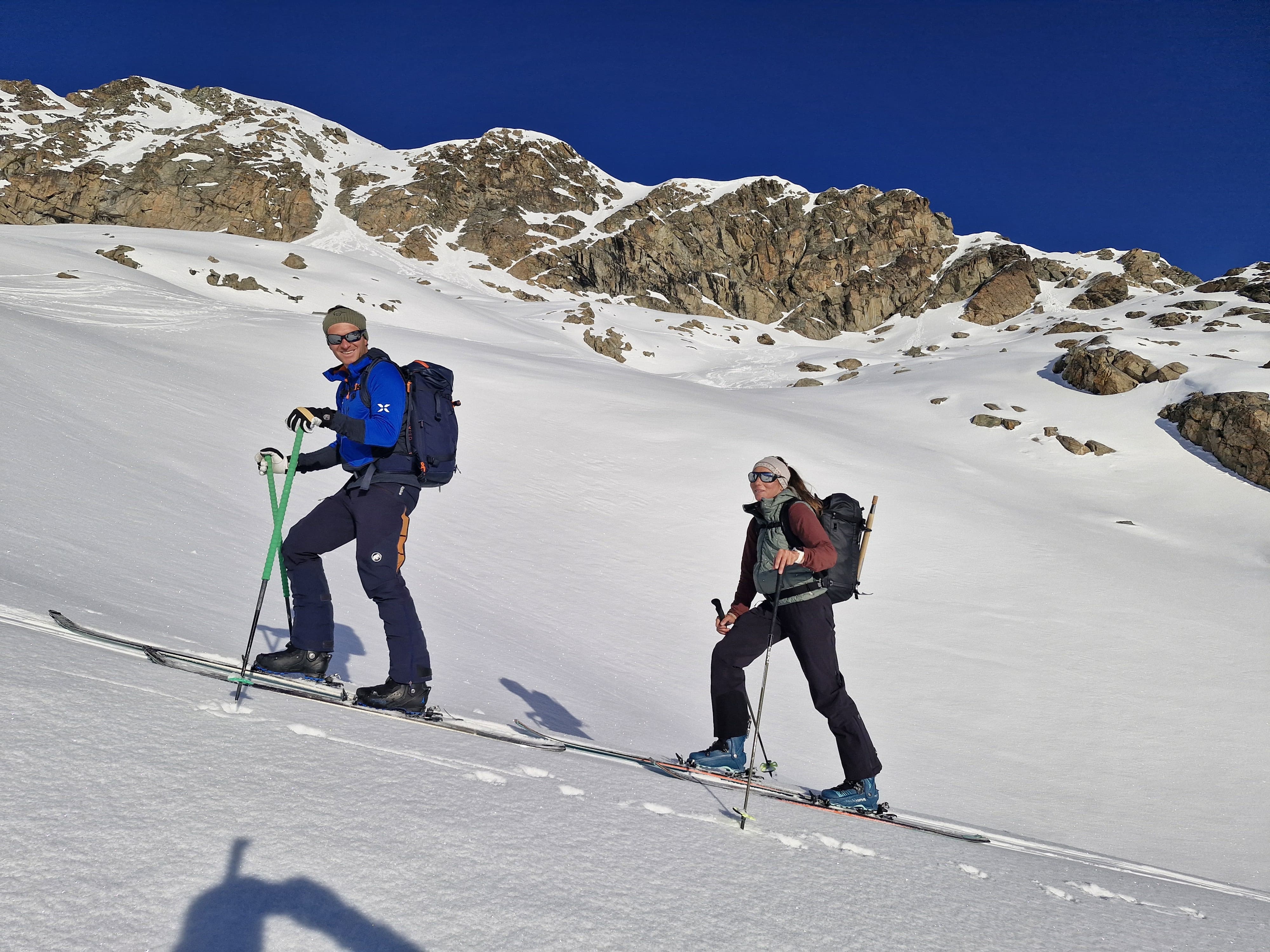 Automne 2024, coup de fil de Manu: « en tant qu’expert au cours de guide, je peux amener deux clients comme cobayes, ça vous dirait ? » euh… comment te dire ?? T’es sérieux ? Ben un peu que ça nous dirait ! Bye bye la semaine à Senja, on change de plans et on part pour les Grisons !