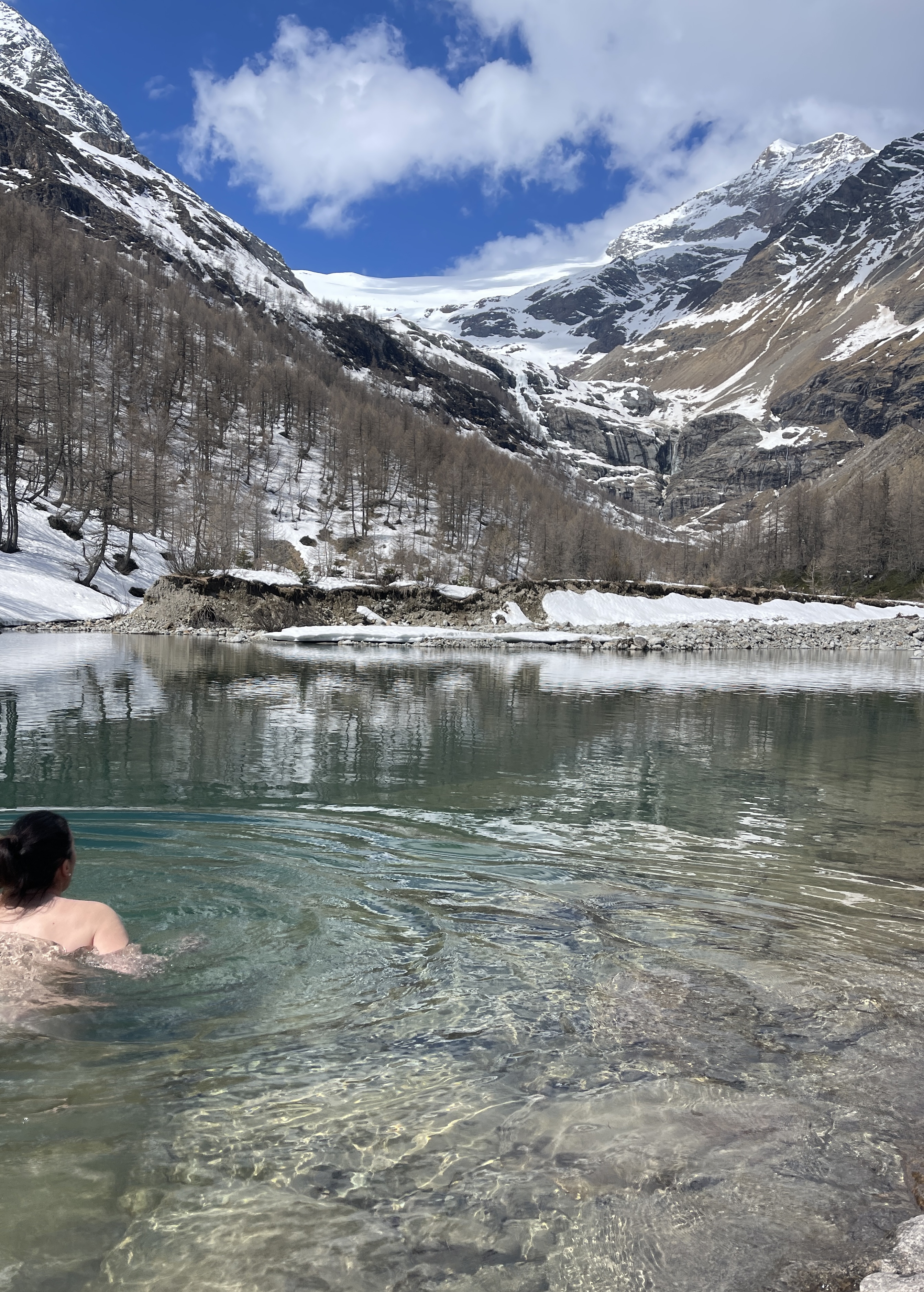 Quand on me montre la remontée vers la gare, je crois à une mauvaise blague.. Elle est genre à mille kilomètres !! J’essaie de me remettre de cette nouvelle catastrophique (lol) quand on passe à côté d’un bassin d’eau gelée et cristalline …. suivez mon regard ! Pål et Émilie sont aussi motivés pour aller faire un plouf… ça fait trop du bien. Après ça, la gare ne me paraît plus si loin, d’autant plus qu’une bonne âme me prendra mes skis pour la montée (comme souvent cette semaine, je suis pourrie gâtée… on s’y habituerait presque).