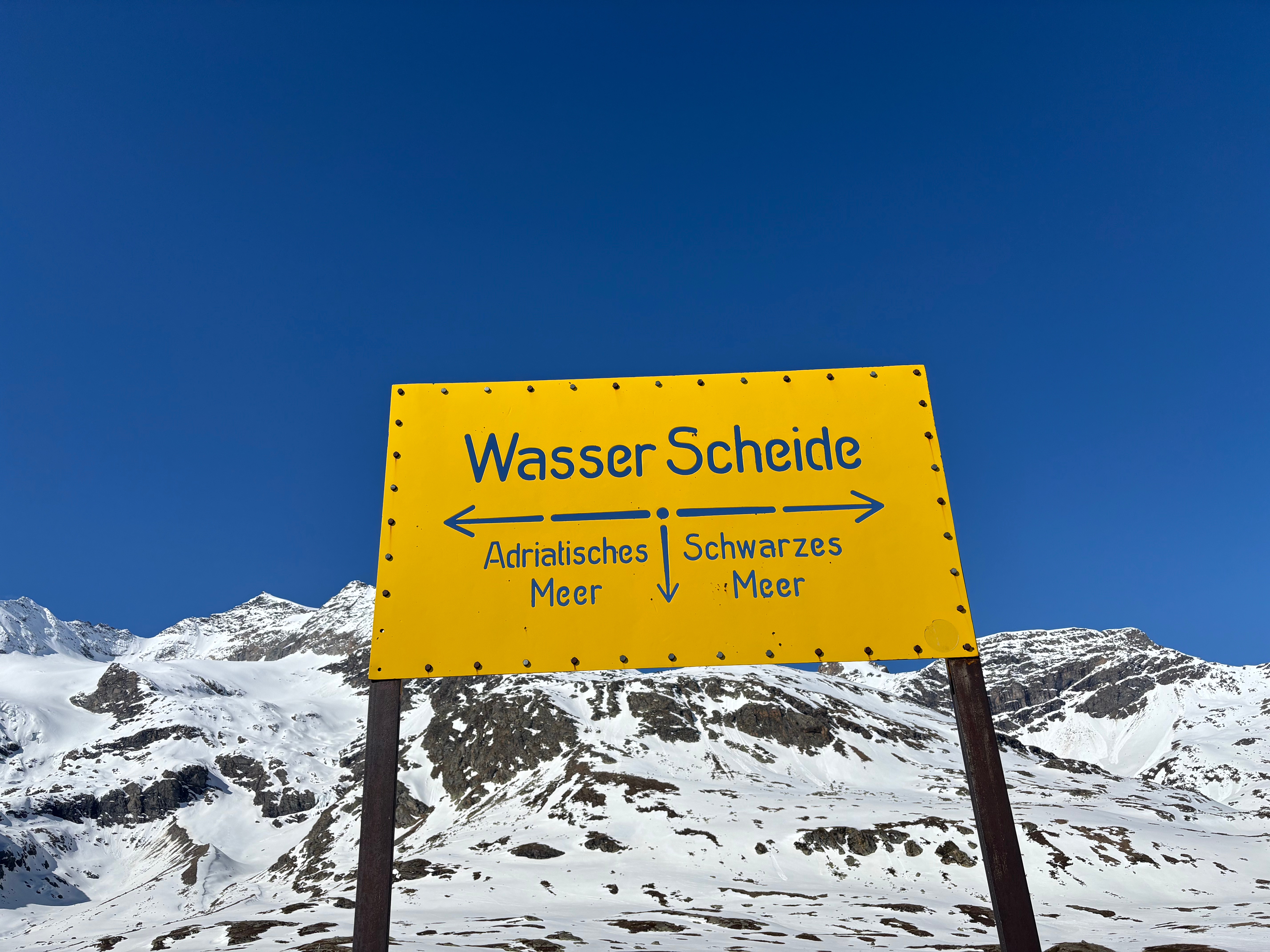 On monte au col de la Bernina en voiture et on peaute au lac. Toute la semaine, on a appelé ce sommet Saas Almagell, c’était plus sympa 😜. Bon finalement, au col, on choisira le sommet de droite, sans nom sur la carte, qu’on a donc baptisé Saas Fee, soyons logiques.