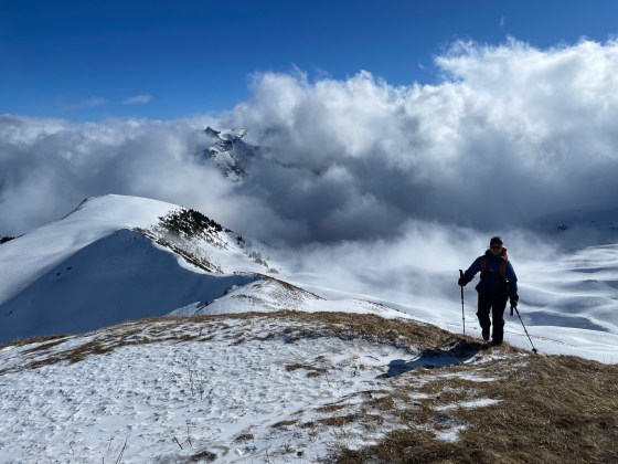 Il faut profiter de la neige basse en altitude pour faire ce genre de course. On part ski aux pieds…